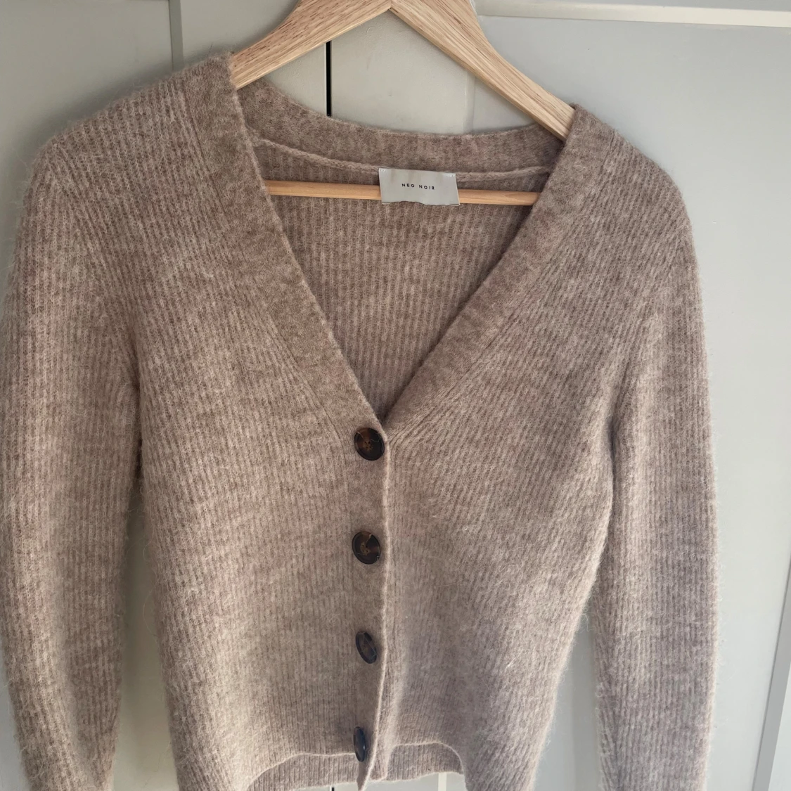 Supermjuk och ribbstickad beige kofta från Neo Noir med v-ringning och stora mörka knappar framtill. Långärmad och i en lite kortare modell som är perfekt att slänga över en topp. Gjord i ett fluffigt och mysigt material.