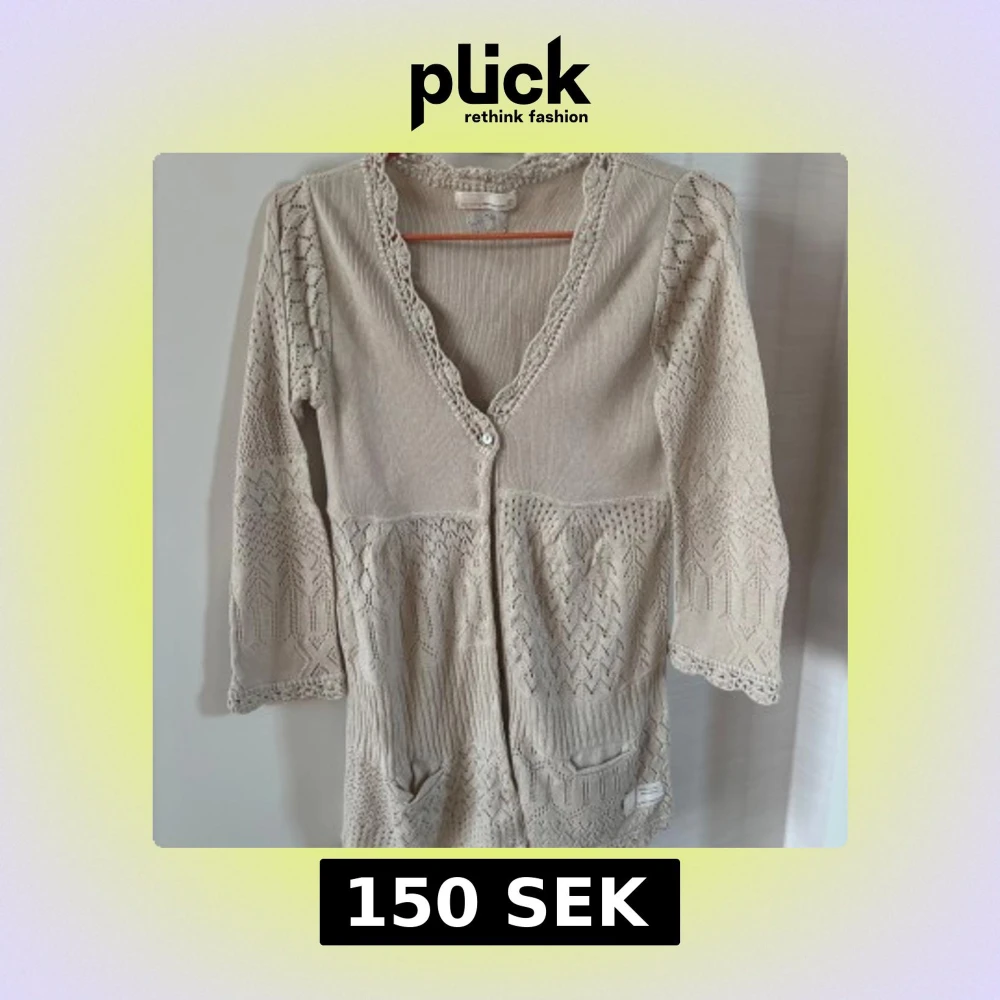 Supersöt beige kofta från Odd Molly i storlek S med virkade spetsdetaljer och mönstrad stickning. Fint skick!🤍