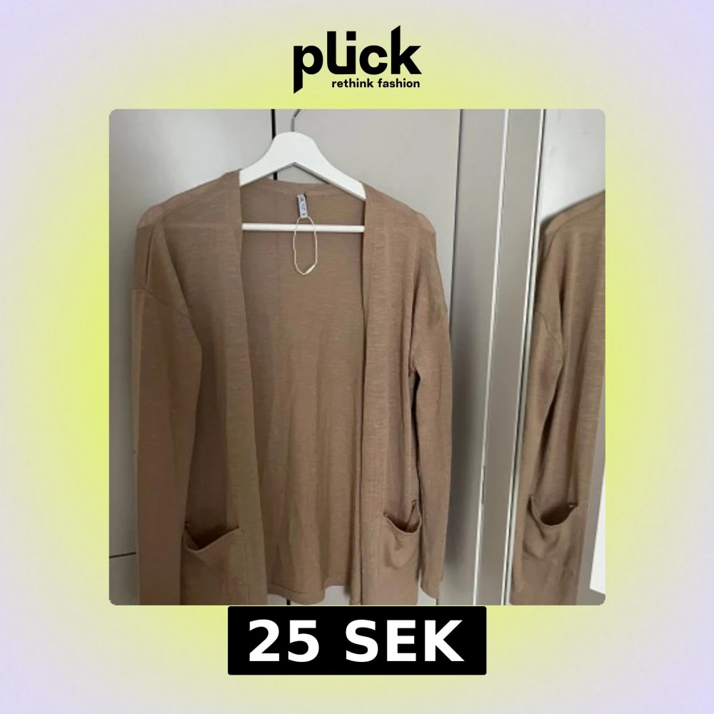 Säljer en tunn och enkel beige kofta från SAILS. Koftan har långa ärmar och två fickor framtill. Perfekt att slänga över en topp för en avslappnad look.