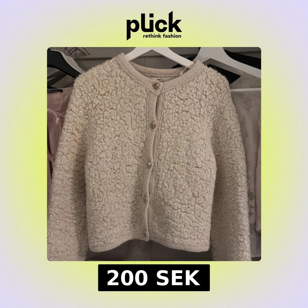 Mysig beige kofta från Gina Tricot i ett fluffigt material. Koftan har långa ärmar och knäpps med knappar framtill. Inte använd mycket men knappen längst ner har ramlat av!