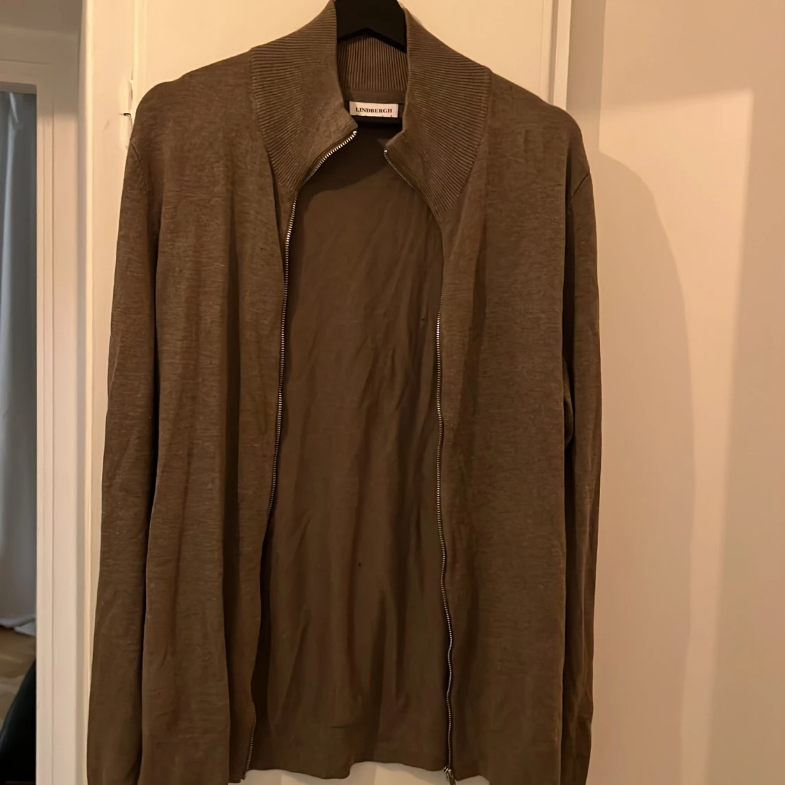 Säljer en beige kofta från Lindbergh med dragkedja framtill och ribbad krage. Koftan har lång ärm och är tillverkad i ett mjukt material som känns skönt mot huden. Perfekt för lager-på-lager och enkel att matcha med olika outfits.