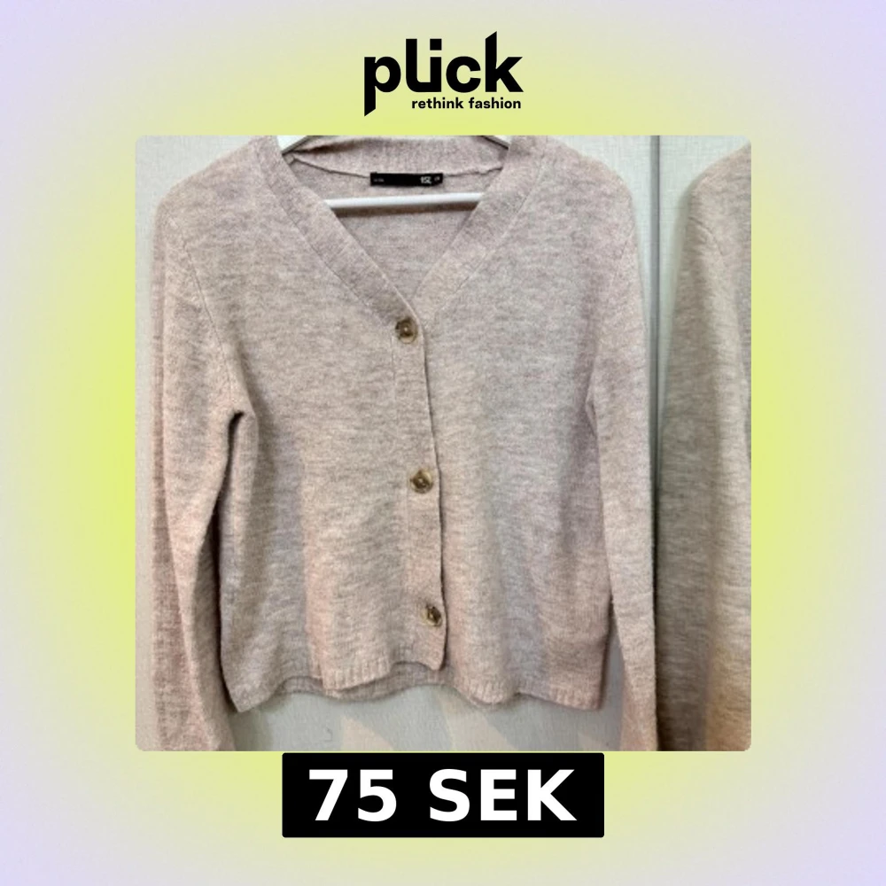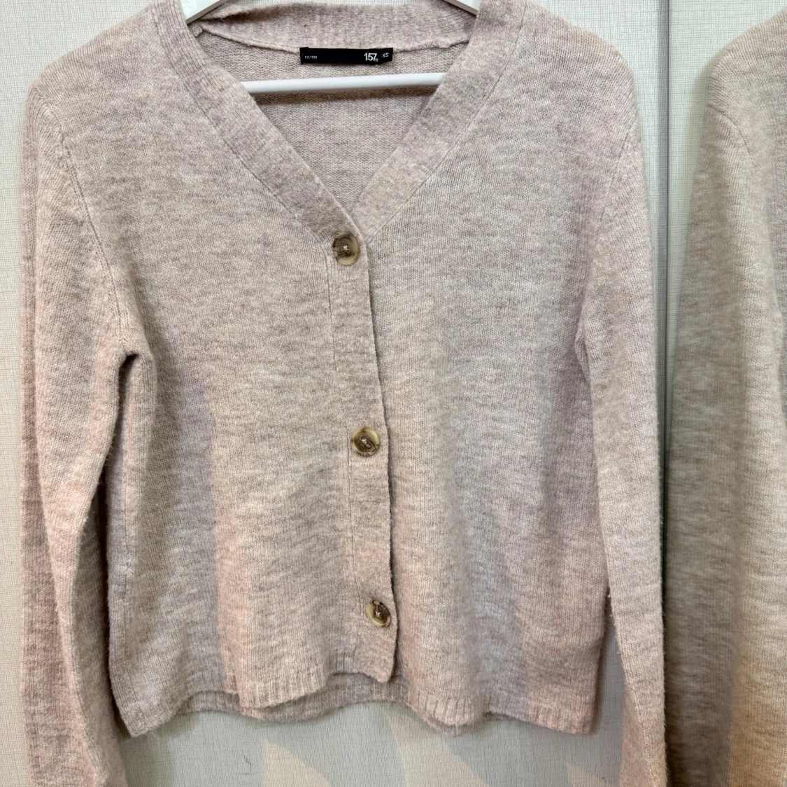 Mysig beige kofta från H&M med v-ringning och tre stora knappar framtill. Långärmad och stickad i mjukt material, perfekt för lager-på-lager och chill dagar. Enkel och stilren design som funkar till det mesta.