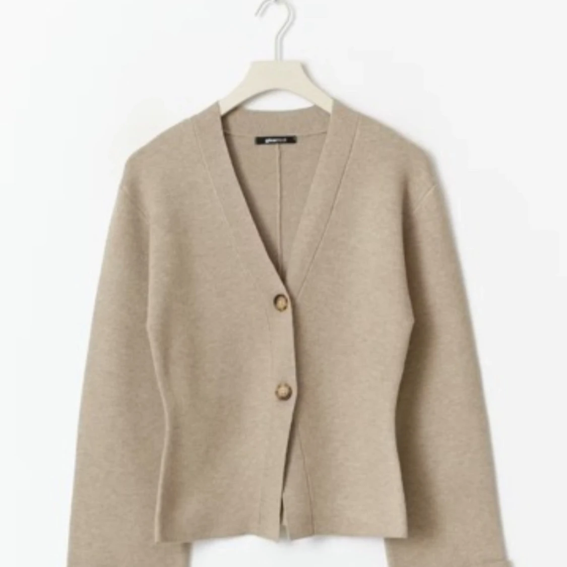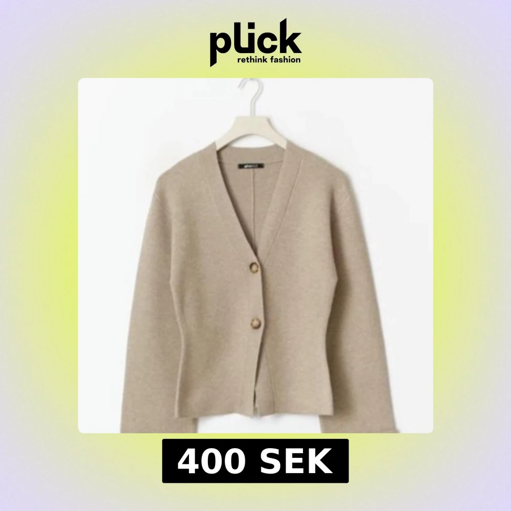 Stilren beige kofta från Gina Tricot med v-ringning och två snygga knappar framtill. Koftan har lång ärm och är tillverkad i mjukt material som passar perfekt för lager-på-lager. Enkel att matcha med både jeans och kjol.