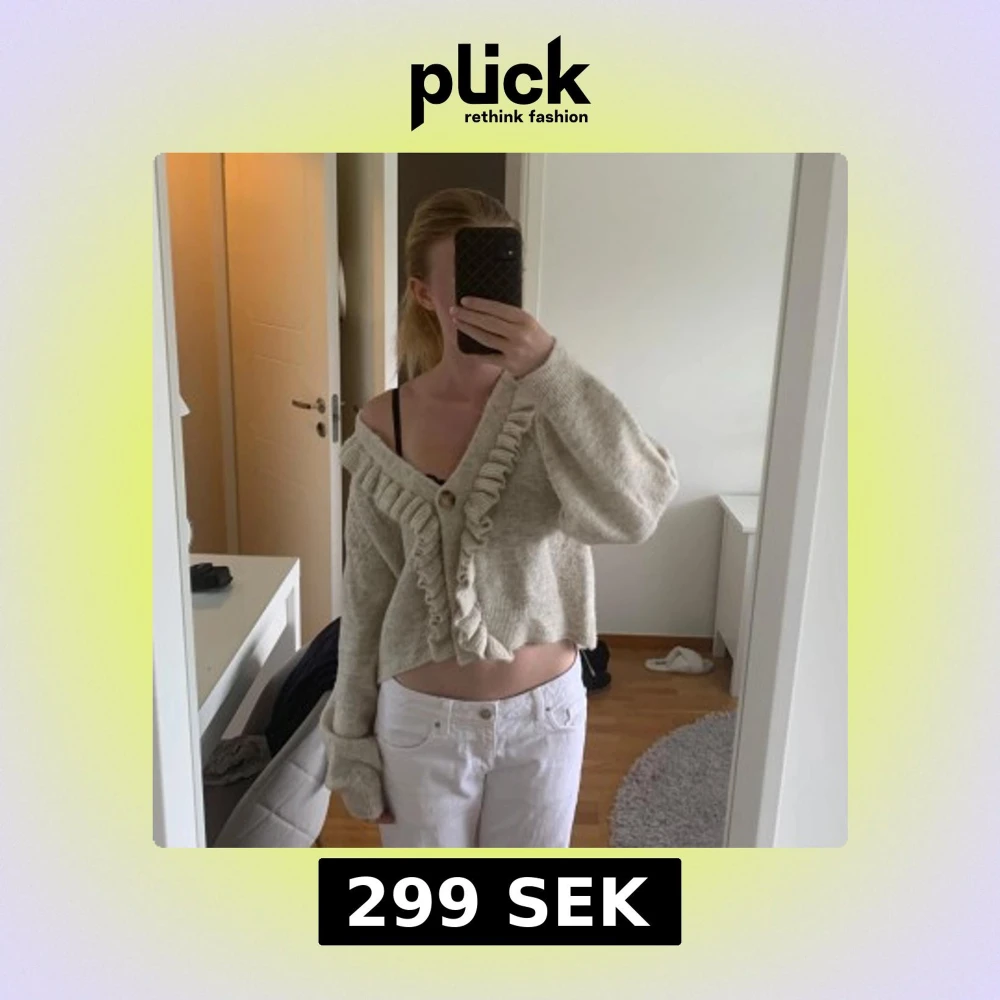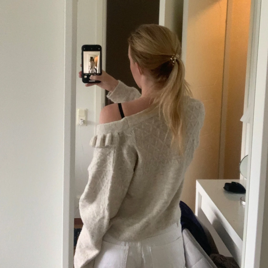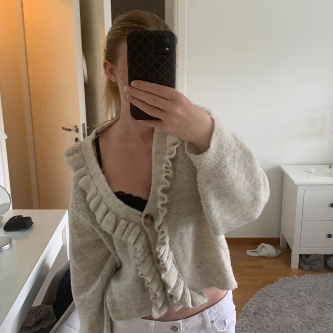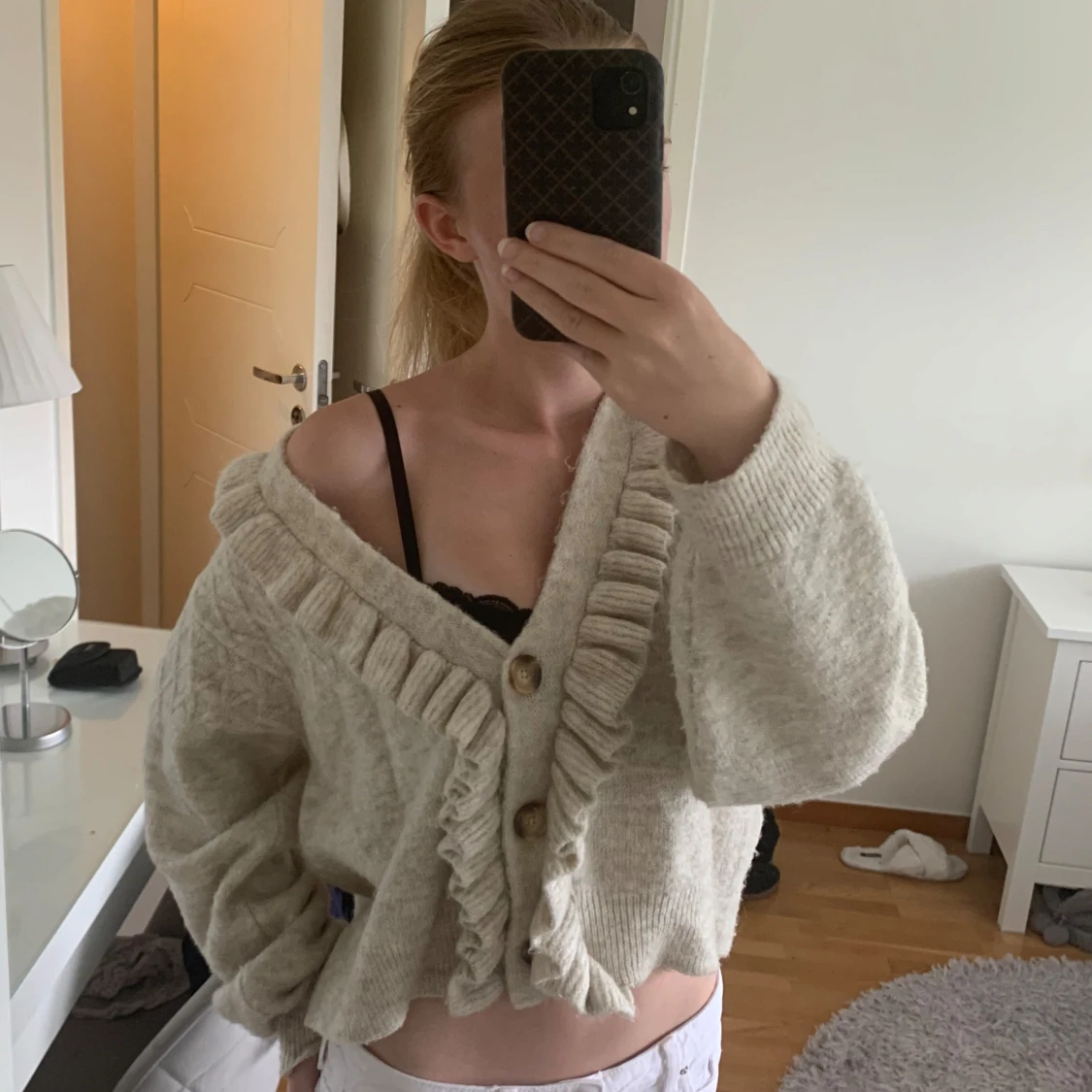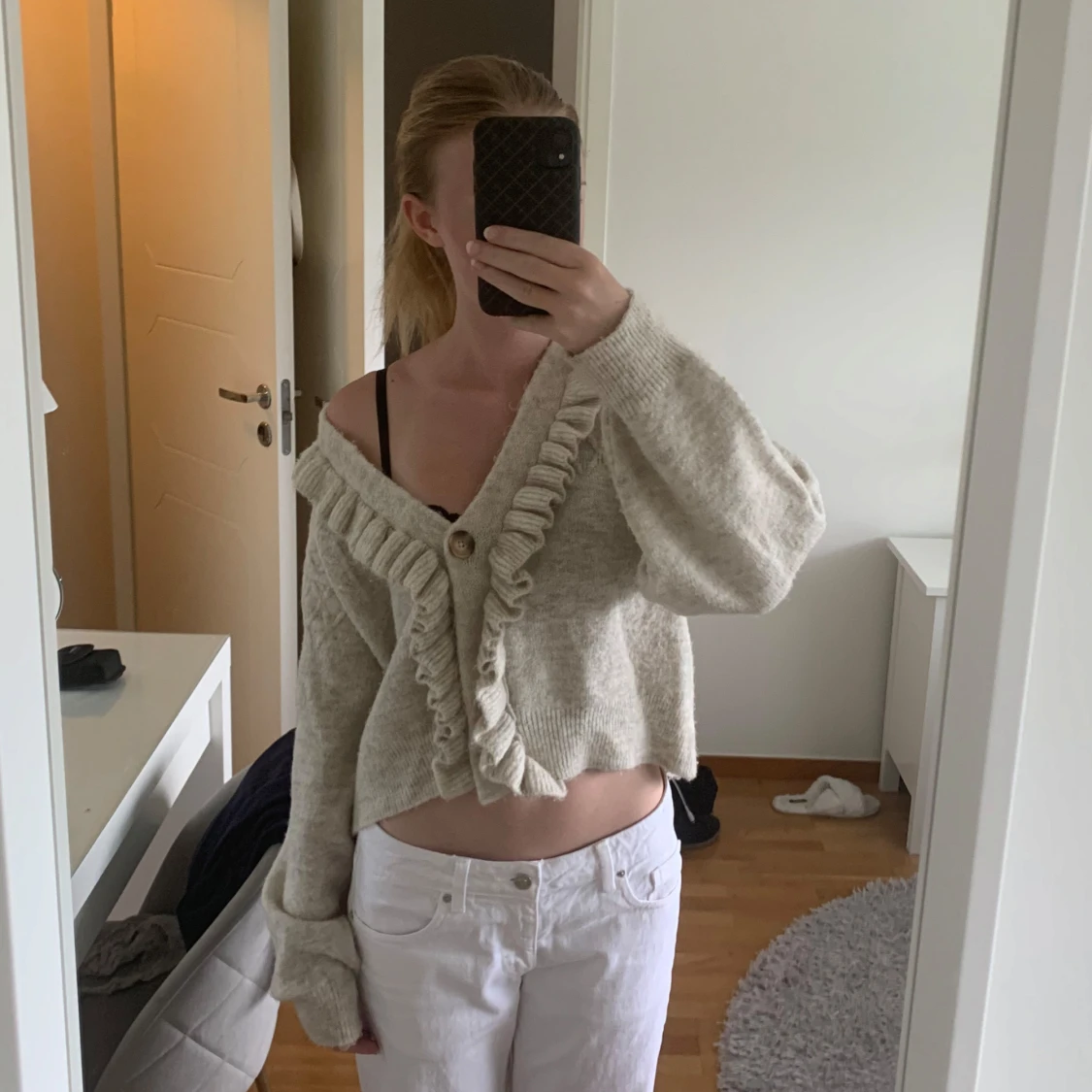 Säljer denna jättesöta beiga koftan med volanger. Från Mango i storlek M men passar mig jättebra som brukar ha XS-S. Hör av vid frågor!💛💛