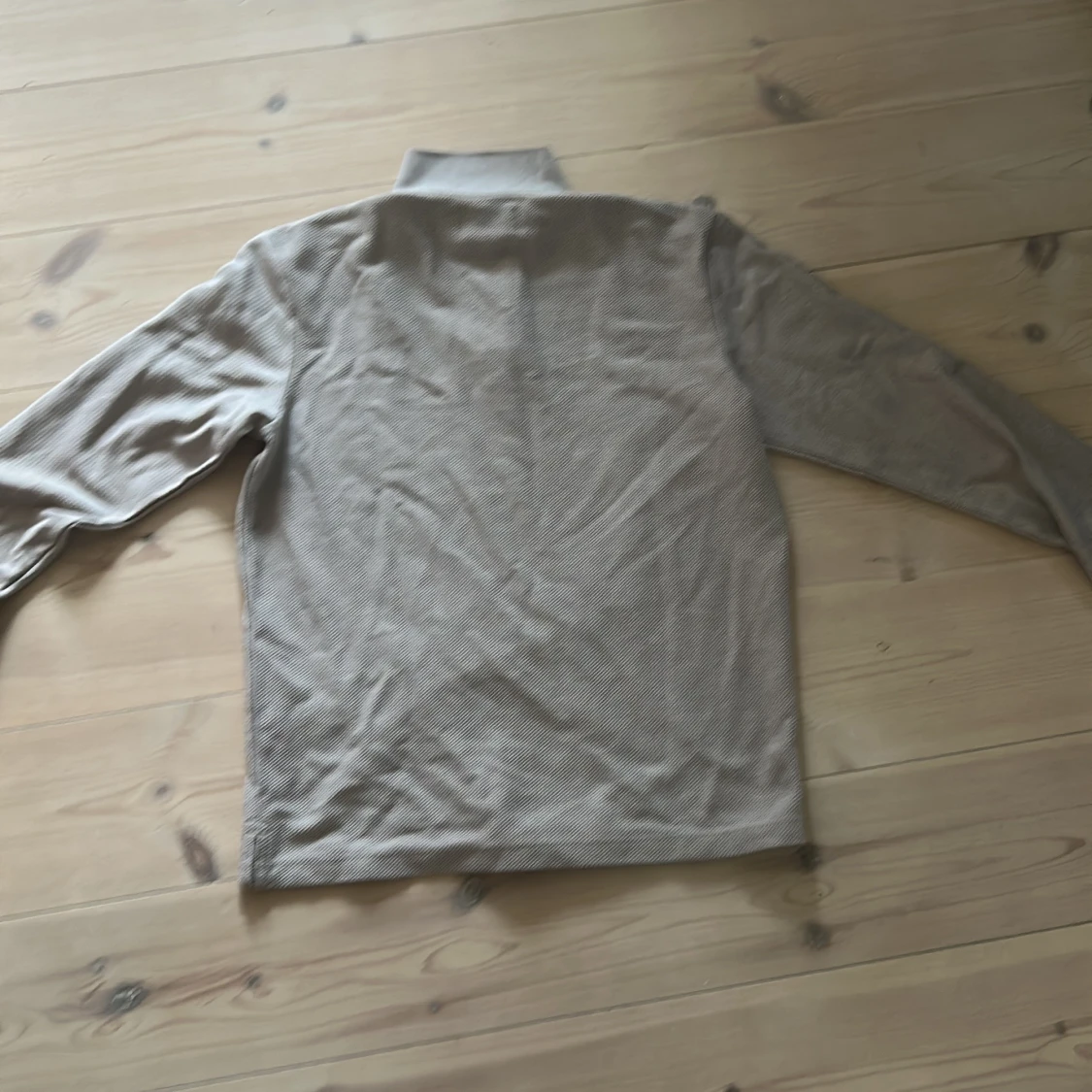 Säljer en beige långärmad pikétröja från Oscar Jacobson med klassisk krage och half zip framtill. Tröjan är i mjuk bomull och har en stilren, enkel look som passar perfekt till lager-på-lager. Snygg till både jeans och chinos.