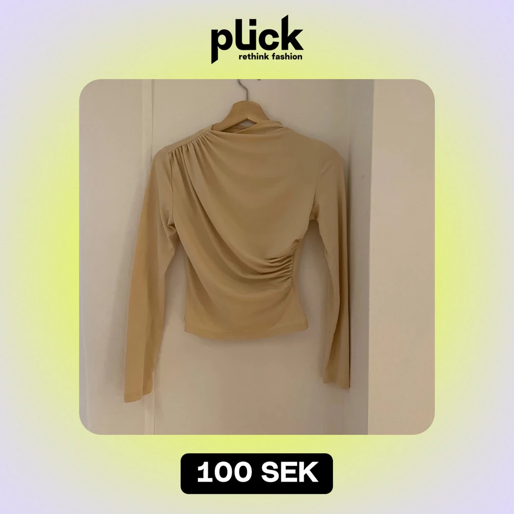 Säljer en stilren beige långärmad topp i mycket bra skick. Den har en elegant drapering på framsidan som ger en snygg detalj. Perfekt för både vardag och festliga tillfällen. Passar bra till jeans eller kjol!