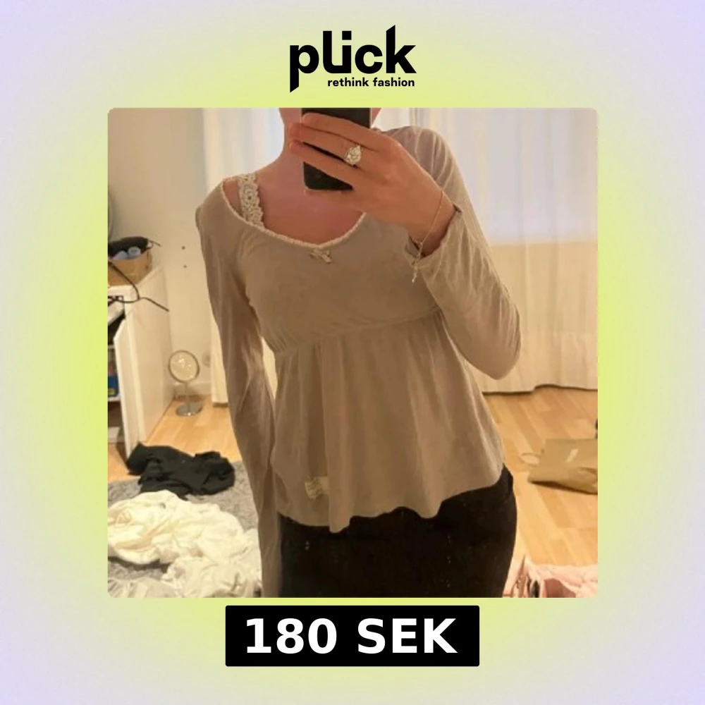 Säljer en söt beige långärmad topp från Odd Molly med spetsdetaljer vid halsringningen och en liten rosett framtill. Köpt på plick! Toppen har en avslappnad passform och ett fint märke på ärmen. Perfekt för en avslappnad stil.