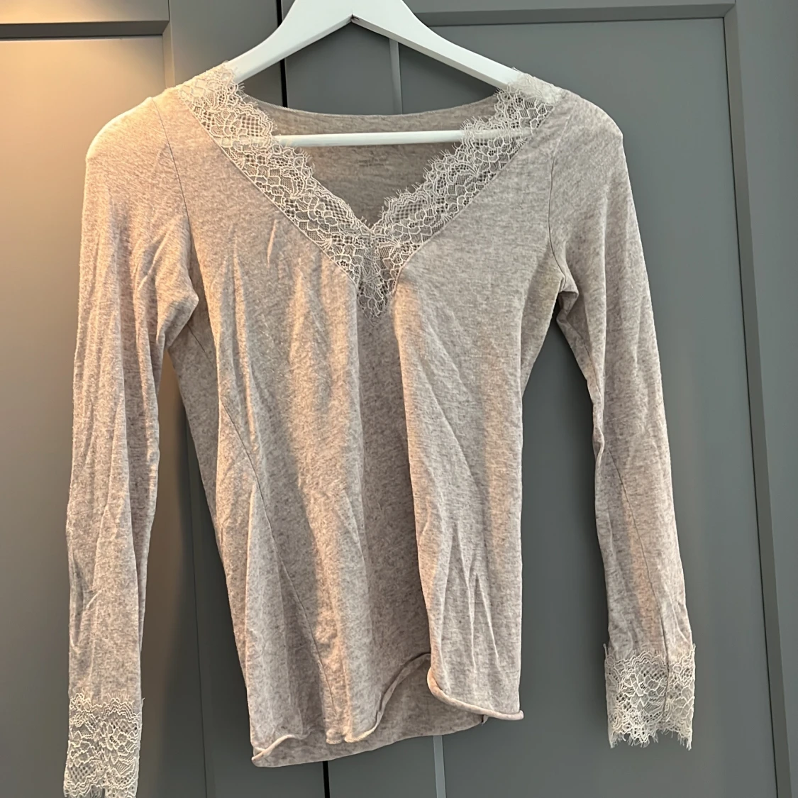 Använt tröjan 1-2 gånger o köpte den för nån vecka sedan men är inte min stil. Så Säljer en superfin beige långärmad topp från Intimissimi. Den har vackra spetsdetaljer vid halsringningen och ärmsluten som ger en romantisk touch. Perfekt för både vardag och fest! 💫