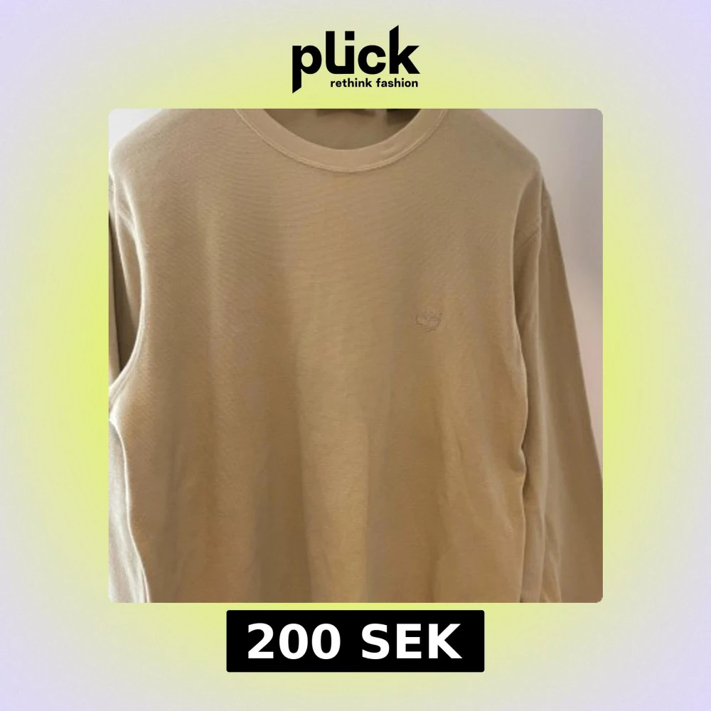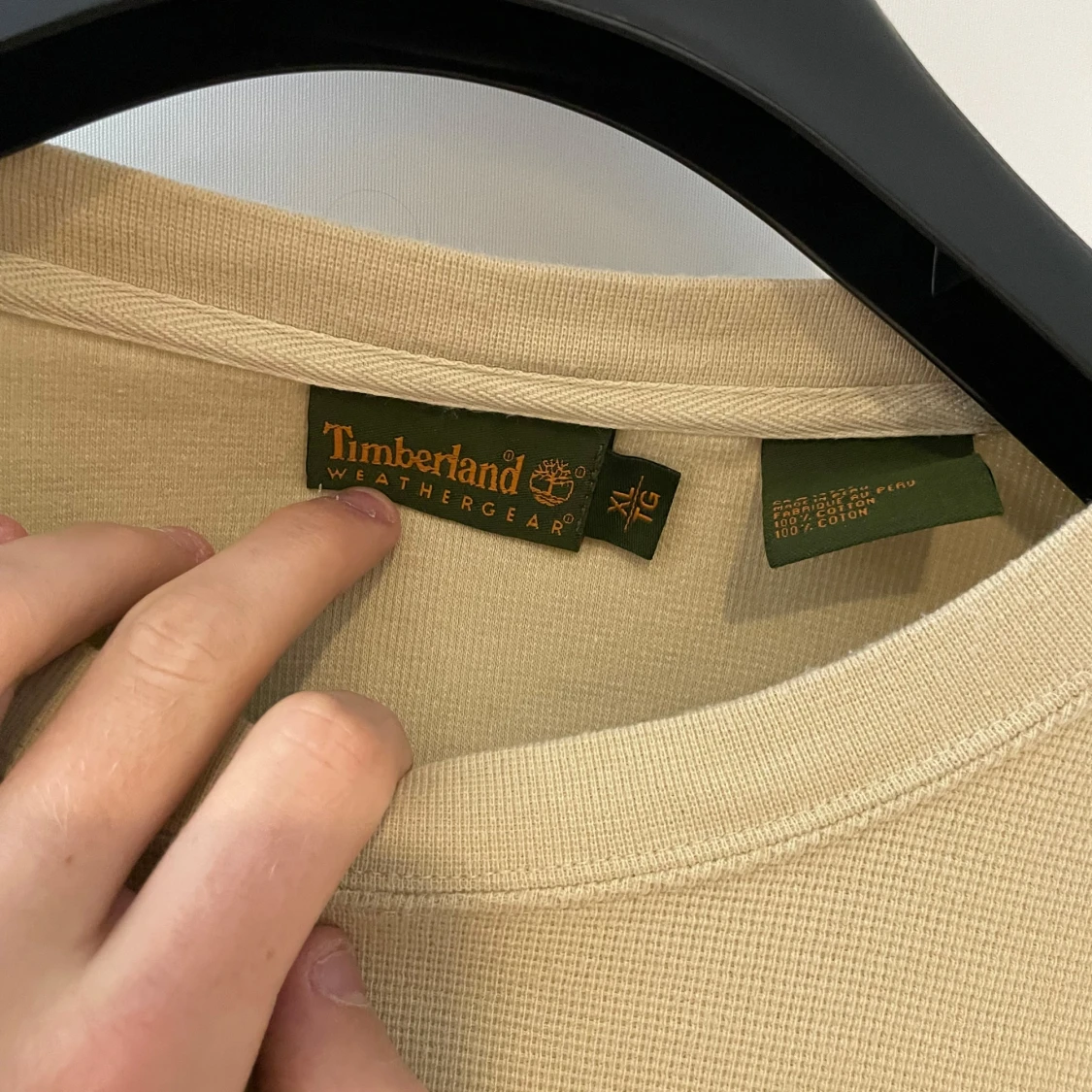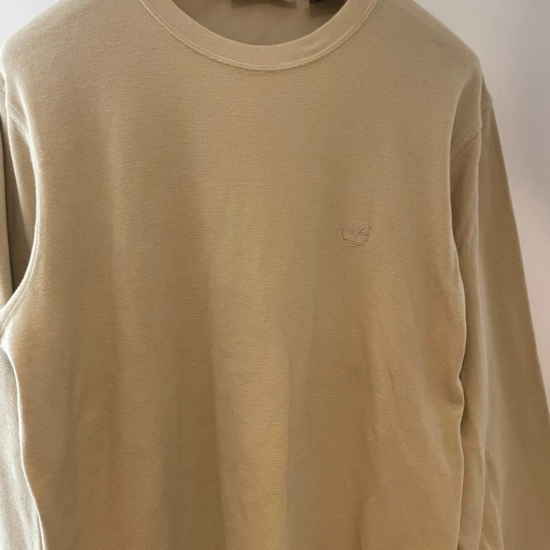 Snygg beige långärmad tröja från Timberland i 100% bomull. Tröjan har en enkel och clean look med rund halsringning och diskret broderad logga på bröstet. Perfekt för dig som gillar stilrena basplagg med lite oversized känsla.