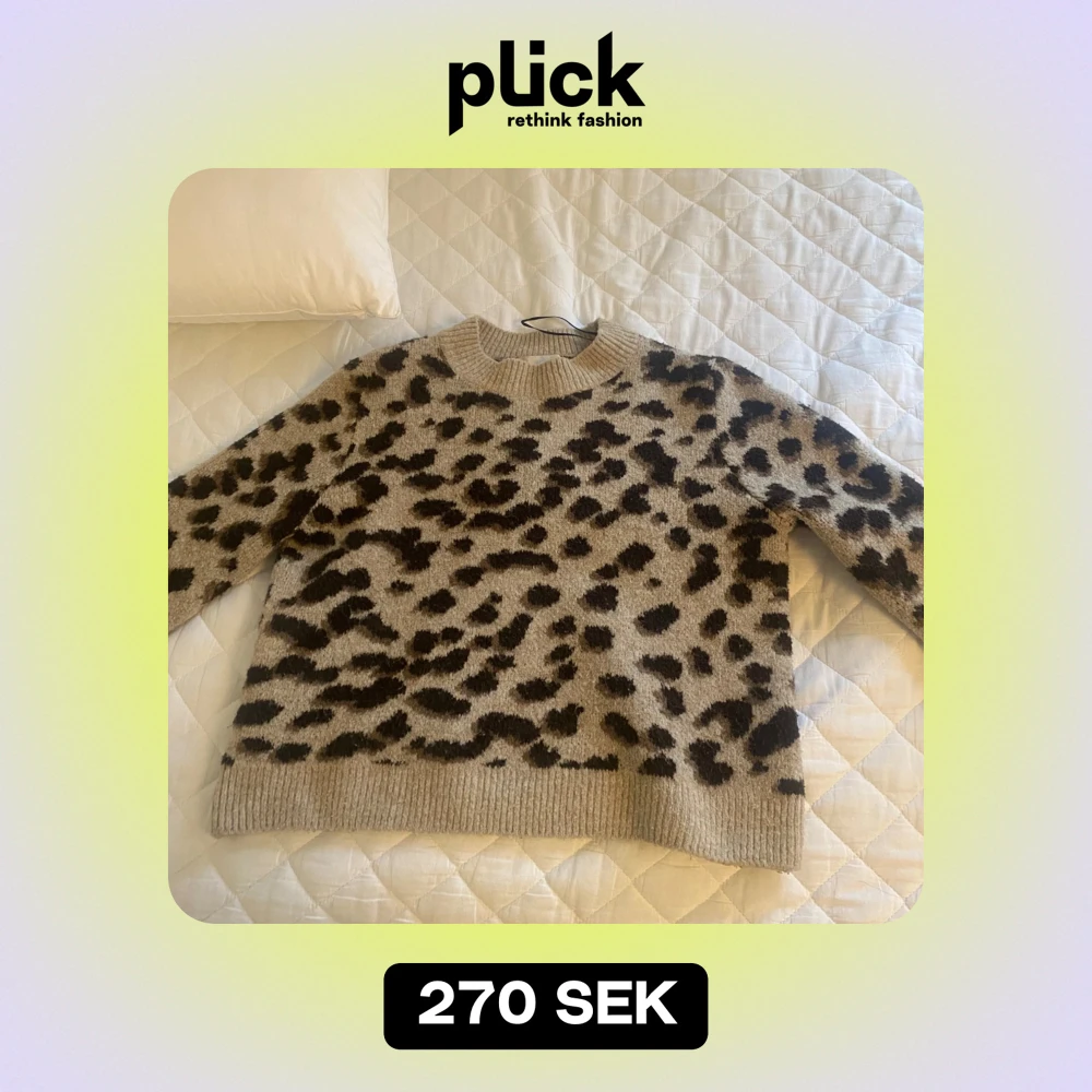 Säljer denna beige tröja med leopardmönster. Tröjan har långa ärmar och en rund halsringning. Använd enbart två gånger. Perfekt för höst och vinter! 🐆