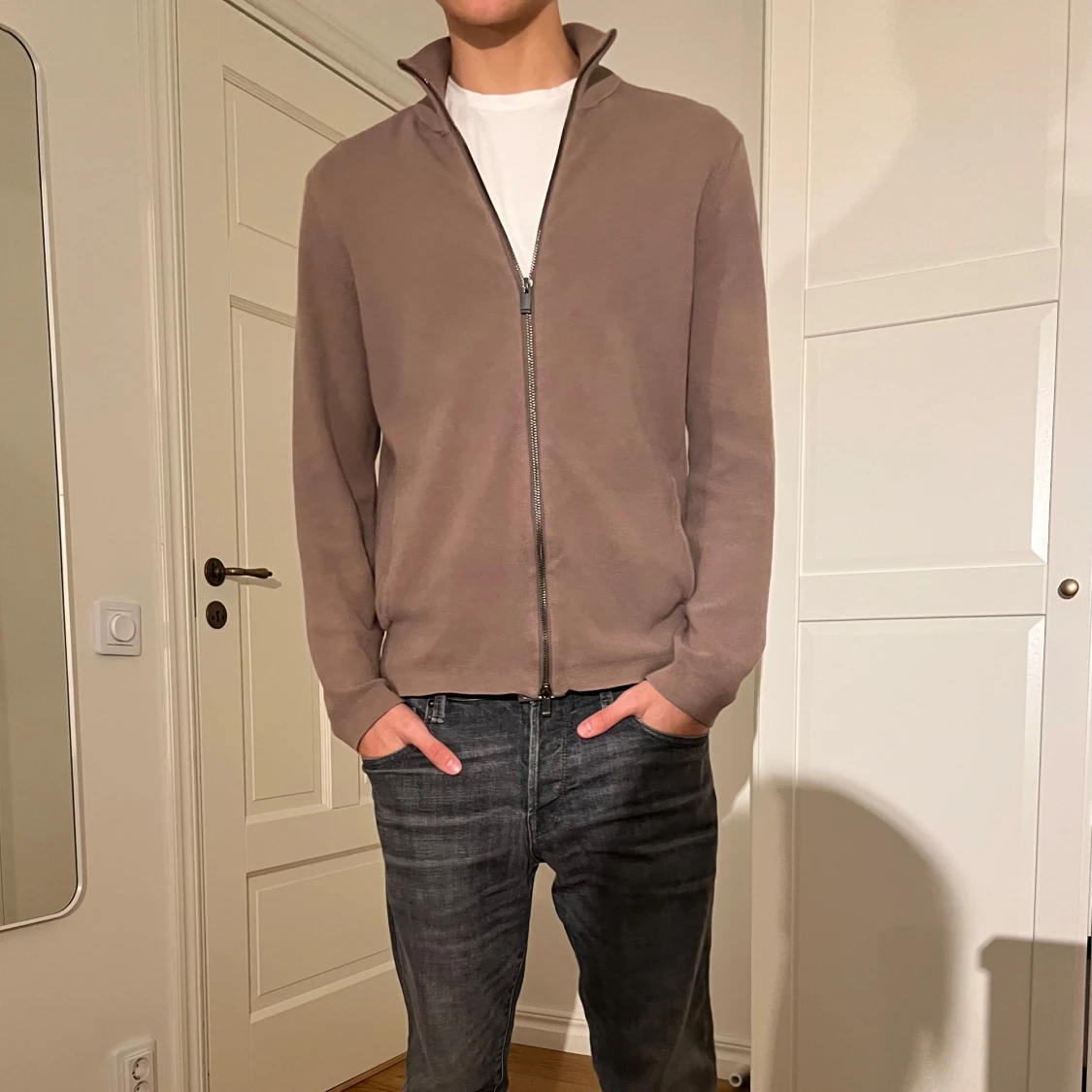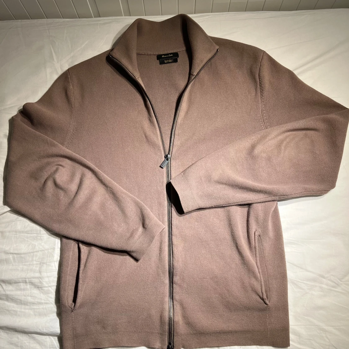 Säljer en stilren beige kofta från Massimo Dutti i mycket bra skick. Den har en dragkedja framtill och är tillverkad i ett mjukt material. Perfekt för både höst och vår. Passar runt 180. Skriv vid intresse eller fundering!🙌