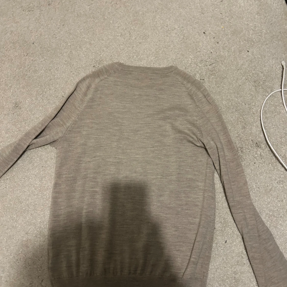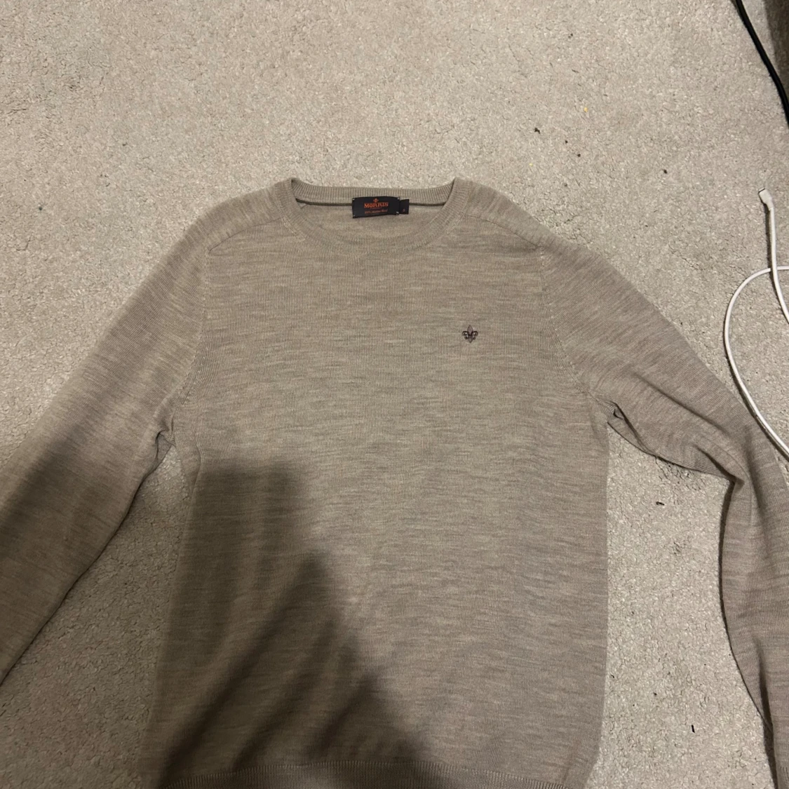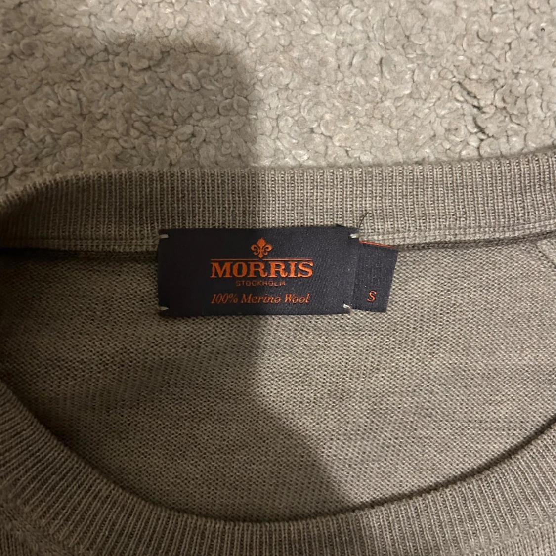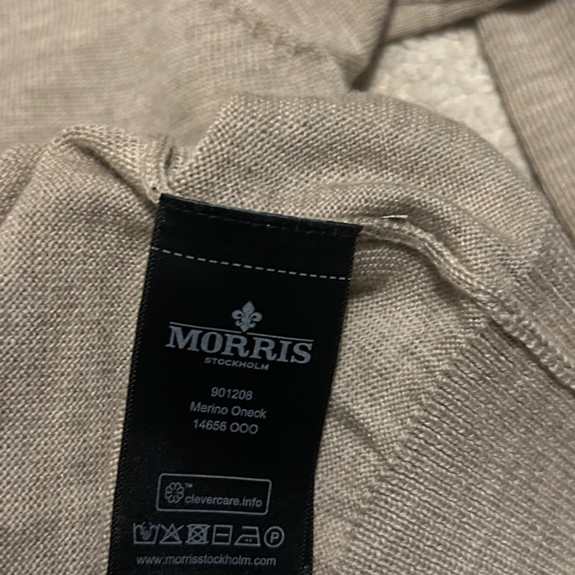 använd Max 1-2 gånger nypris 1500. Snygg beige tröja från Morris i 100% merinoull. Klassisk rund halsringning och diskret broderad logga på bröstet. Långärmad och tunnstickad modell som är perfekt för lager-på-lager. Enkel och stilren design som funkar till allt.