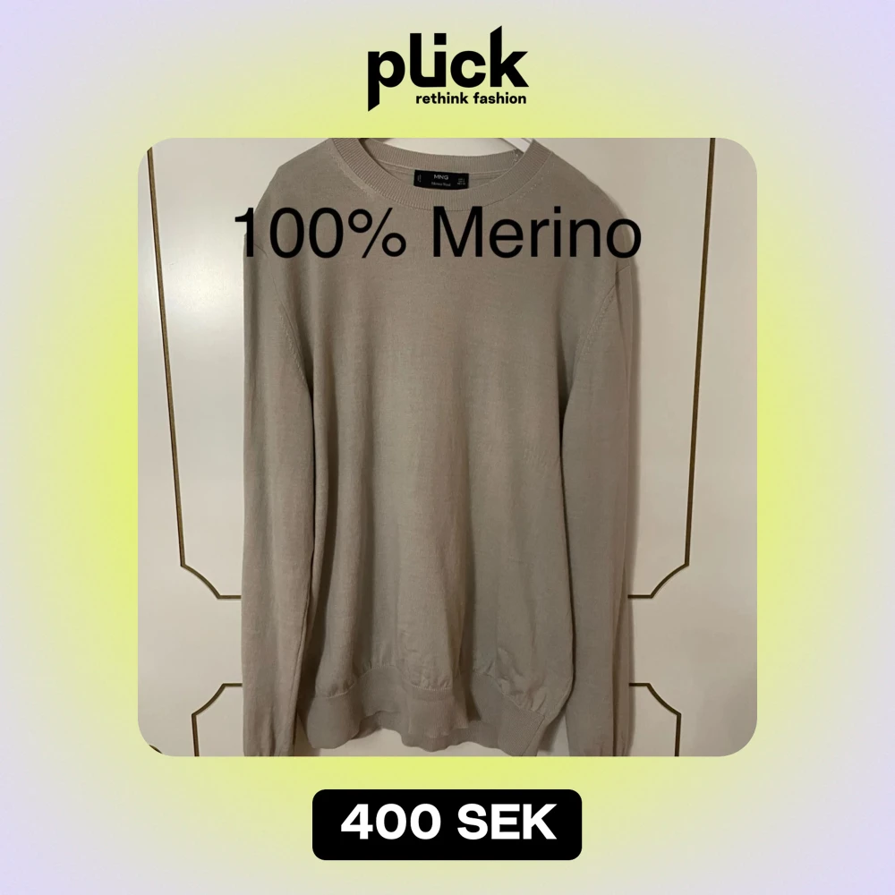 Säljer en supermjuk och stilren beige tröja i 100% merinoull. Perfekt för kyliga dagar med sin långärmade design och klassiska passform. Tröjan är i mycket bra skick och passar både till vardags och lite finare tillfällen. Ett måste i garderoben för höst och vinter! 🍂
