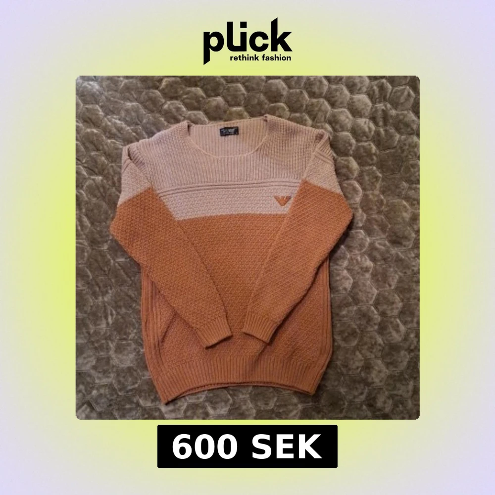 Säljer en snygg stickad tröja från Armani Jeans i beige och brun. Tröjan har ett diskret märke på bröstet och är perfekt för kyligare dagar. Den har en rund hals och långa ärmar med ribbade muddar. Liten defekt på etiketten men annars i toppskick.