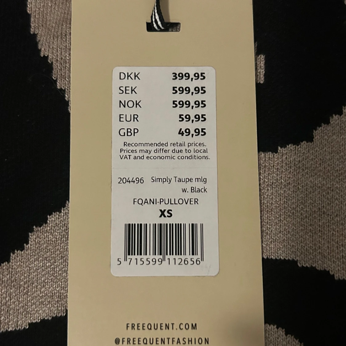 Säljer en superfin beige tröja med svart abstrakt mönster från Freequent. Den har långa ärmar och en skön passform. Materialet känns mjukt och bekvämt.