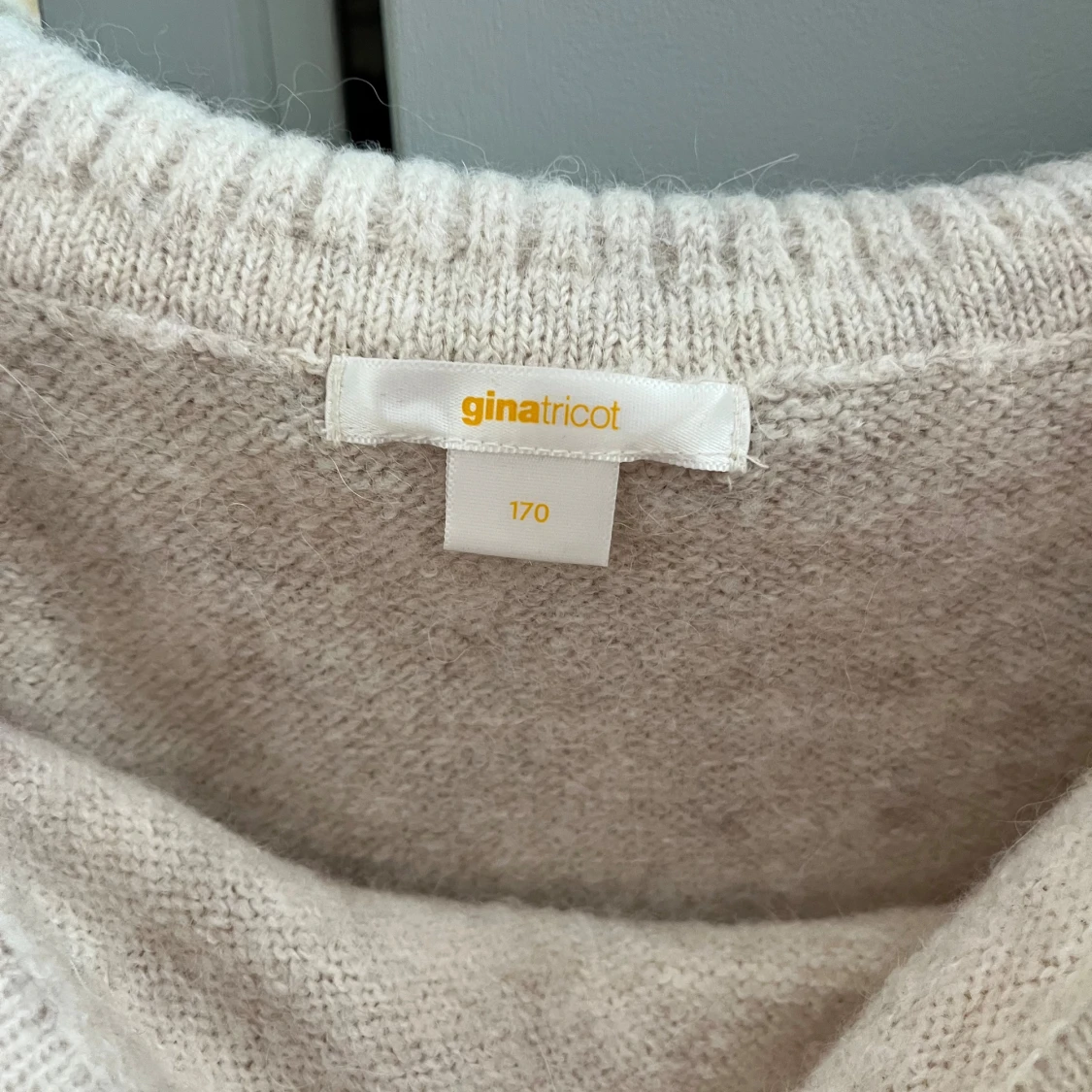 Mysig beige stickad tröja från Gina Tricot med bred ribbad offshoulder-krage. Tröjan har lång ärm och är perfekt för kyliga dagar. Den är mjuk och har en avslappnad passform som är enkel att styla med jeans eller kjol.