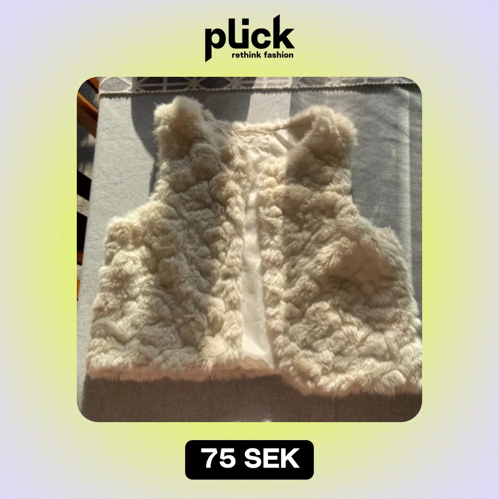 En mjuk och fluffig beige pälsväst från H&M. Västen är ärmlös och har en bekväm passform, perfekt för att hålla värmen under kyliga dagar. passar perfekt för att ha den över en klänning eller topp, väl använd men inga defekter finns, är stor i strl så passar från xxs till s, jätte gullig💗