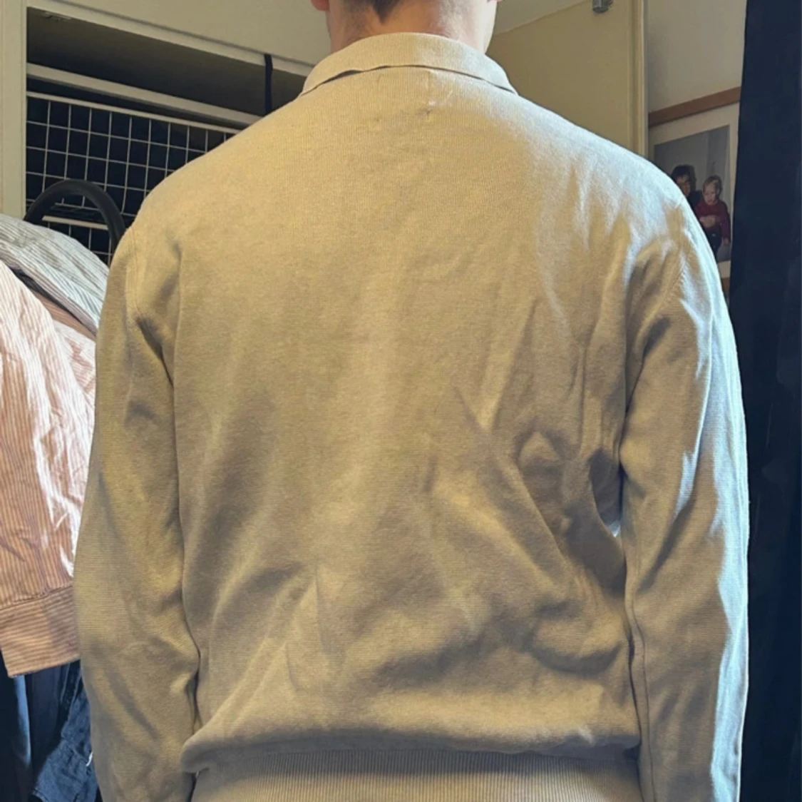 Säljer en stilren beige pikétröja med lång ärm och klassisk krage. Tröjan har tre knappar framtill och ribbade muddar vid ärmslut och nederkant. Perfekt för dig som gillar en clean och enkel look. Pris kan diskuteras!
