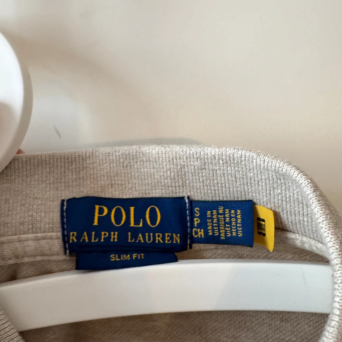 Klassisk beige pikétröja från Polo Ralph Lauren i slim fit-modell. Tröjan har korta ärmar, krage och knappar framtill samt den ikoniska broderade loggan på bröstet. Tillverkad i mjuk bomull som känns skön mot huden.