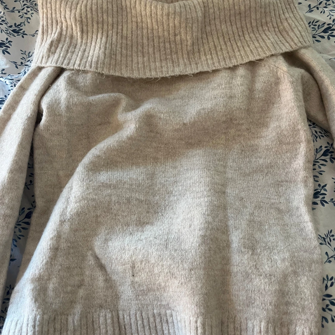 Mysig beige polotröja från Gina Tricot med bred, ribbad krage och långa ärmar. Tröjan är stickad och har ribbade muddar vid ärmslut och nederkant. Perfekt för dig som gillar en chill och enkel stil under höst och vinter.