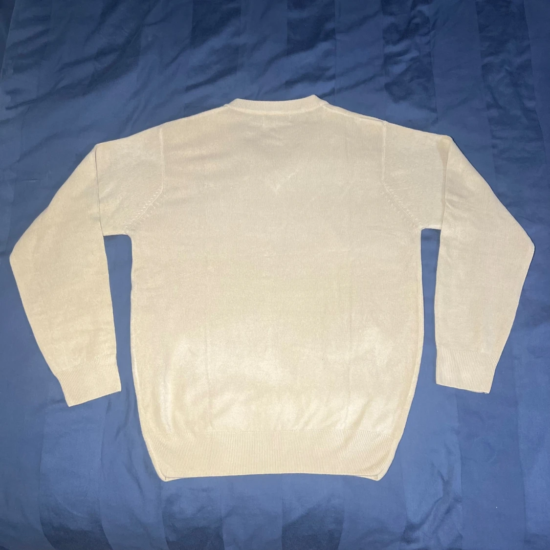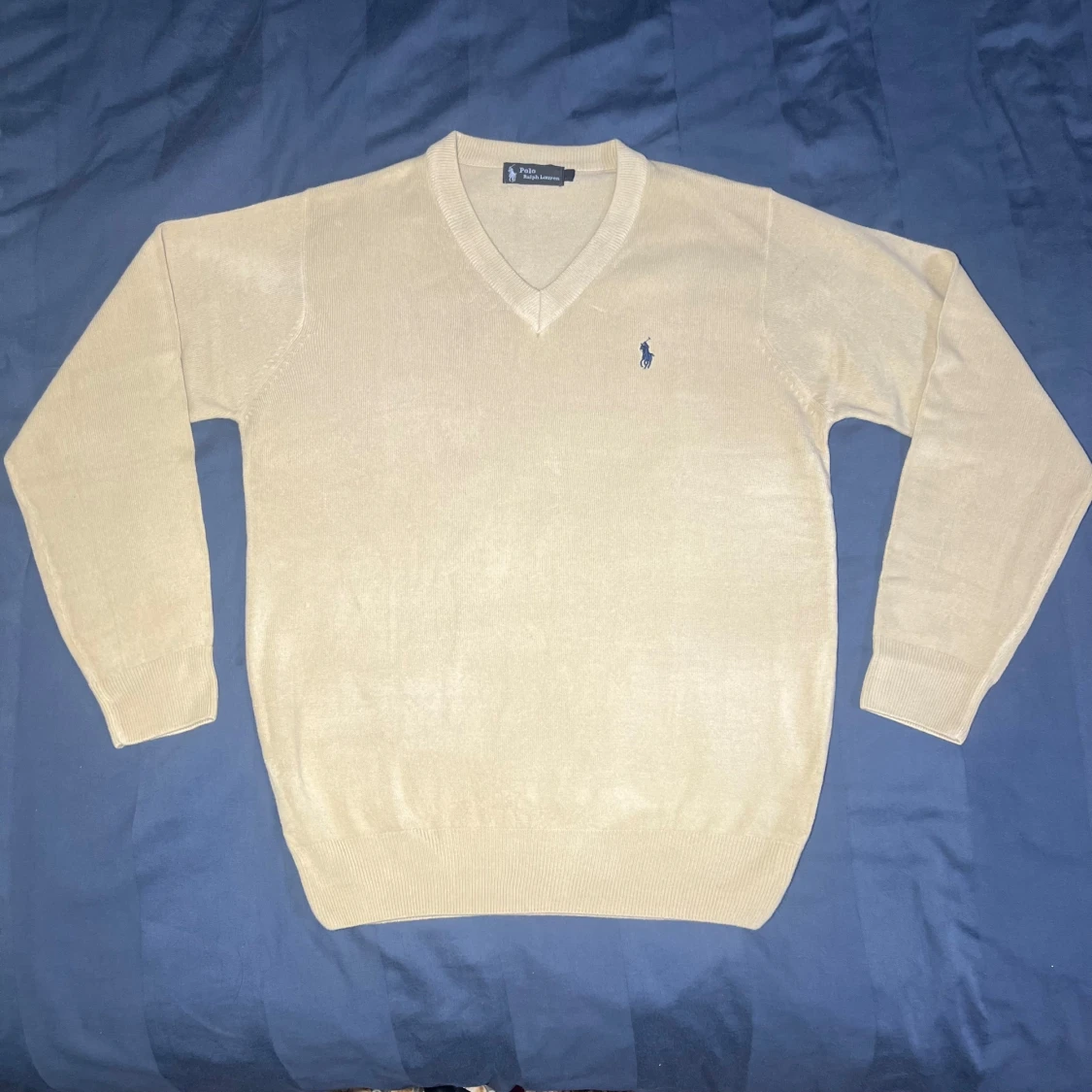 Säljer en V-neck tjocktröja från Ralph Lauren! Färg 🎨📊 Tröjan har en ”cream” färg då den är lite ljusbrun aktig Mått📏 Längd : 70 cm Lång 50 cm Bred Storlek M Skick☘️ Tröjan är i perfekt skick utan defekter eller hål! Material🧵 80% cotton (se sista bilderna)