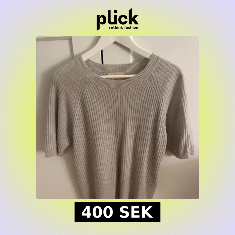 Supermjuk och ribbstickad kashmirtröja från H&M i beige ton. Tröjan har korta ärmar, rund halsringning och en relaxed passform. Perfekt för lager-på-lager och ger en clean och stilren look.
