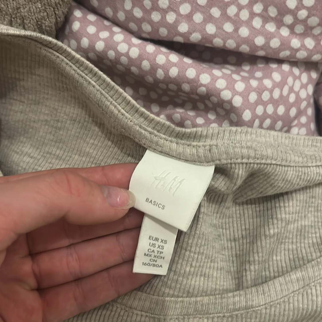 Superenkel och snygg beige ribbad långärmad topp från H&M Basics. Modellen är figurnära med rundad, lite djupare urringning. Perfekt att styla med jeans eller kjol för en clean look. Mjuk och stretchig bomullsblandning.