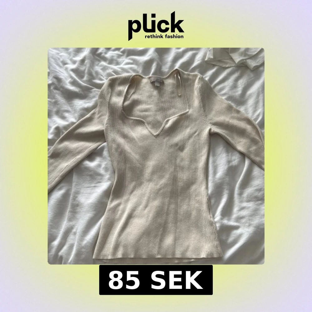 Säljer en beige ribbad långärmad tröja med snygg v-ringning och smal passform. Tröjan har en lätt stickad känsla och är perfekt för lager-på-lager. Stilren och enkel att matcha till olika outfits.