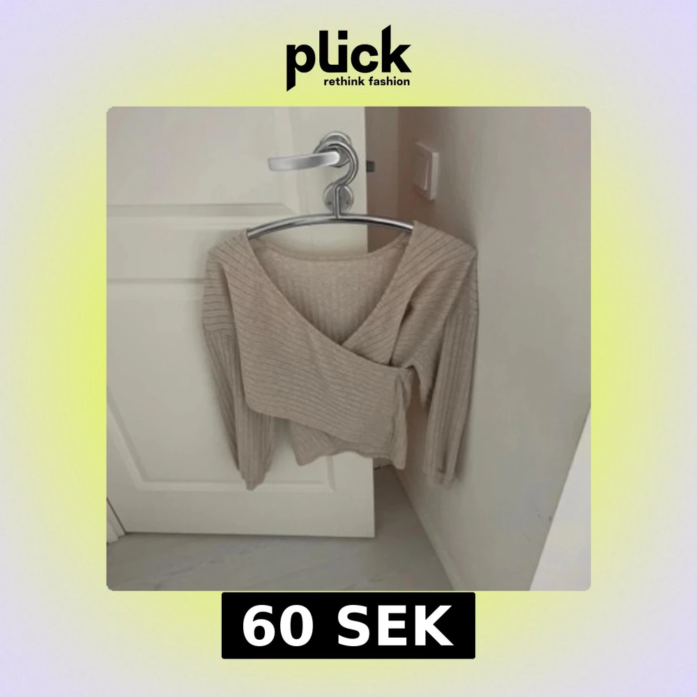 Säljer en stilren beige omlottopp med ribbad struktur. Toppen har långa ärmar och en v-ringad design som ger en elegant look. Perfekt för både vardag och speciella tillfällen.