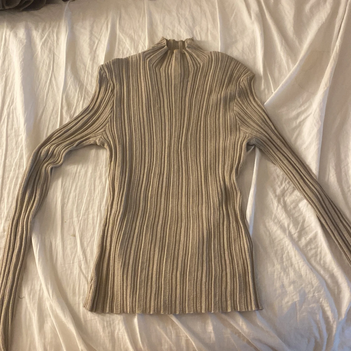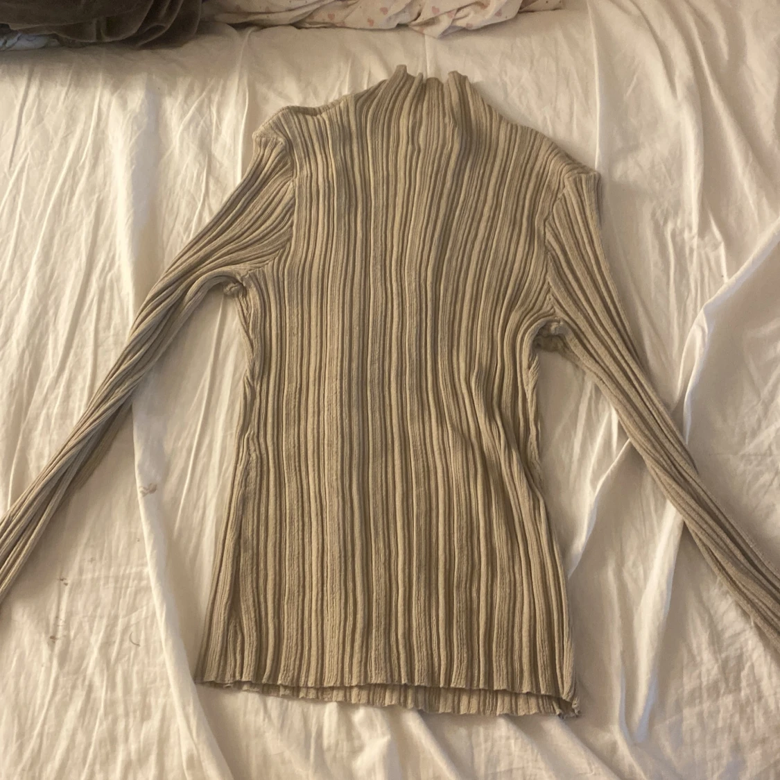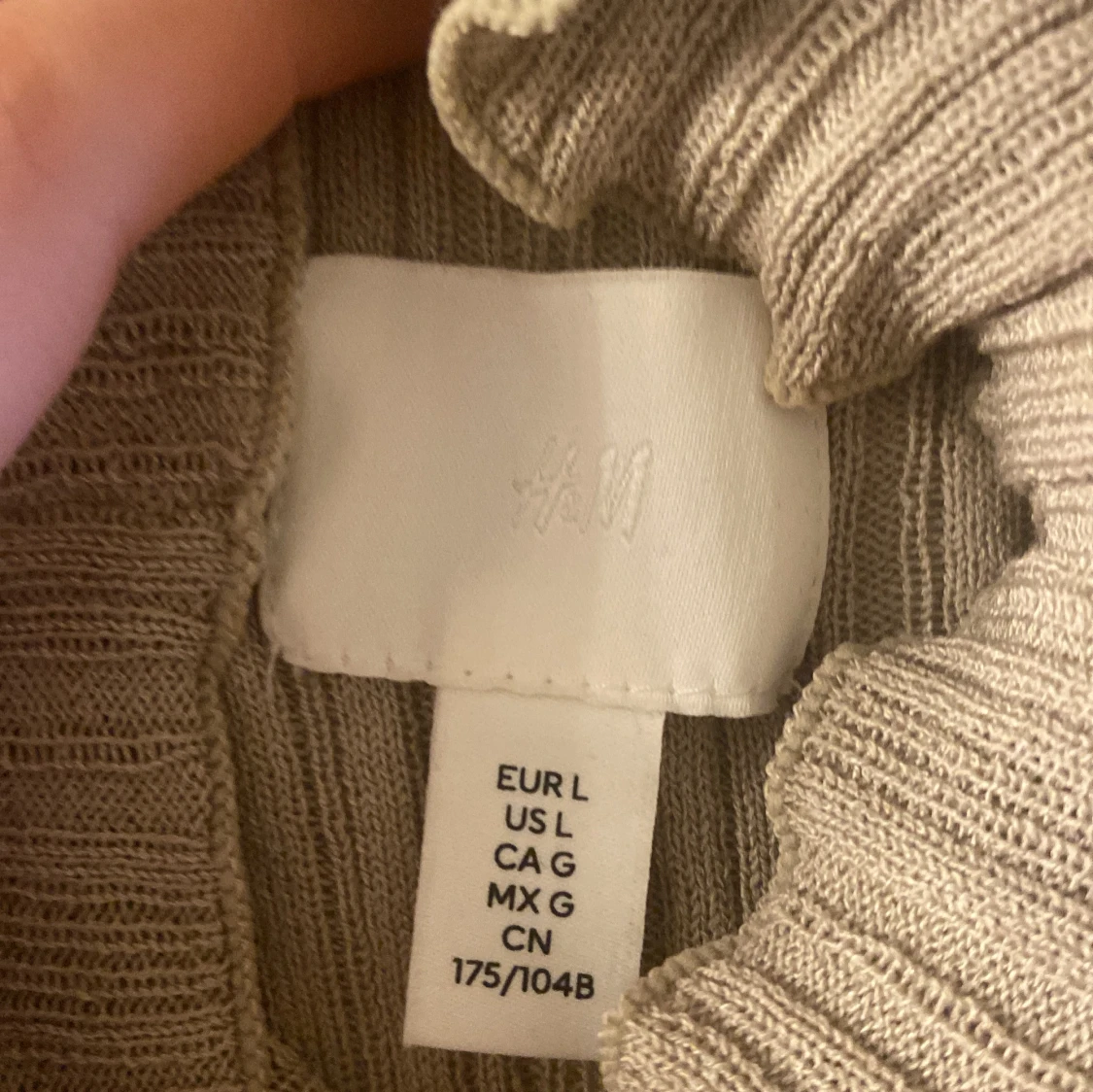 Säljer en beige/grön ribbad polotröja från H&M i storlek L. Tröjan är ny och nästan aldrig använd. Derför är den i topp skick.
