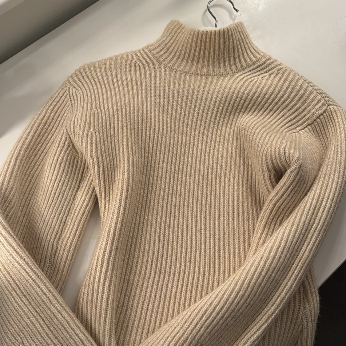 Säljer en stilren beige ribbad polotröja från H&M. Perfekt för kyliga dagar med sin höga krage och långa ärmar. Tröjan är i en mjuk och bekväm kvalitet som passar till många olika outfits. Ett måste i garderoben för den som älskar klassiska plagg.
