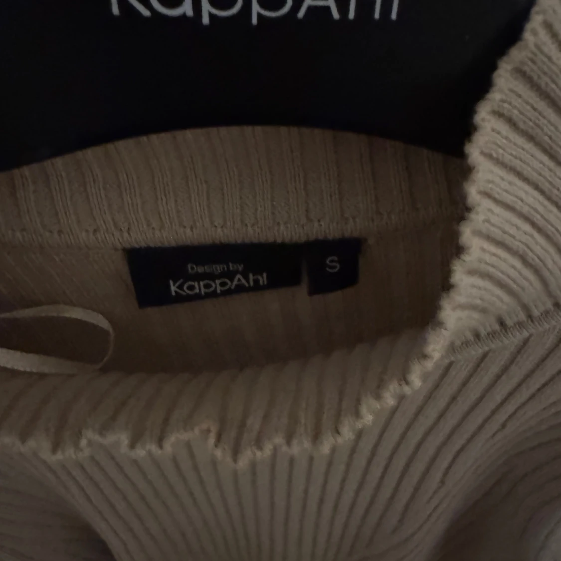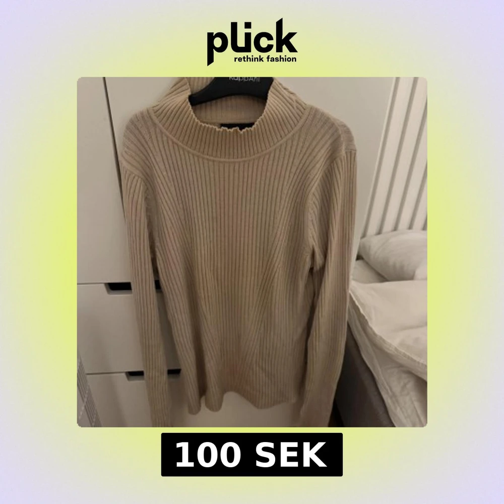 Säljer en beige ribbad polotröja från KappAhl i storlek S. Tröjan har lång ärm, hög krage och är tillverkad i ett mjukt stickat material. Perfekt för lager-på-lager och passar snyggt till både jeans och kjol.