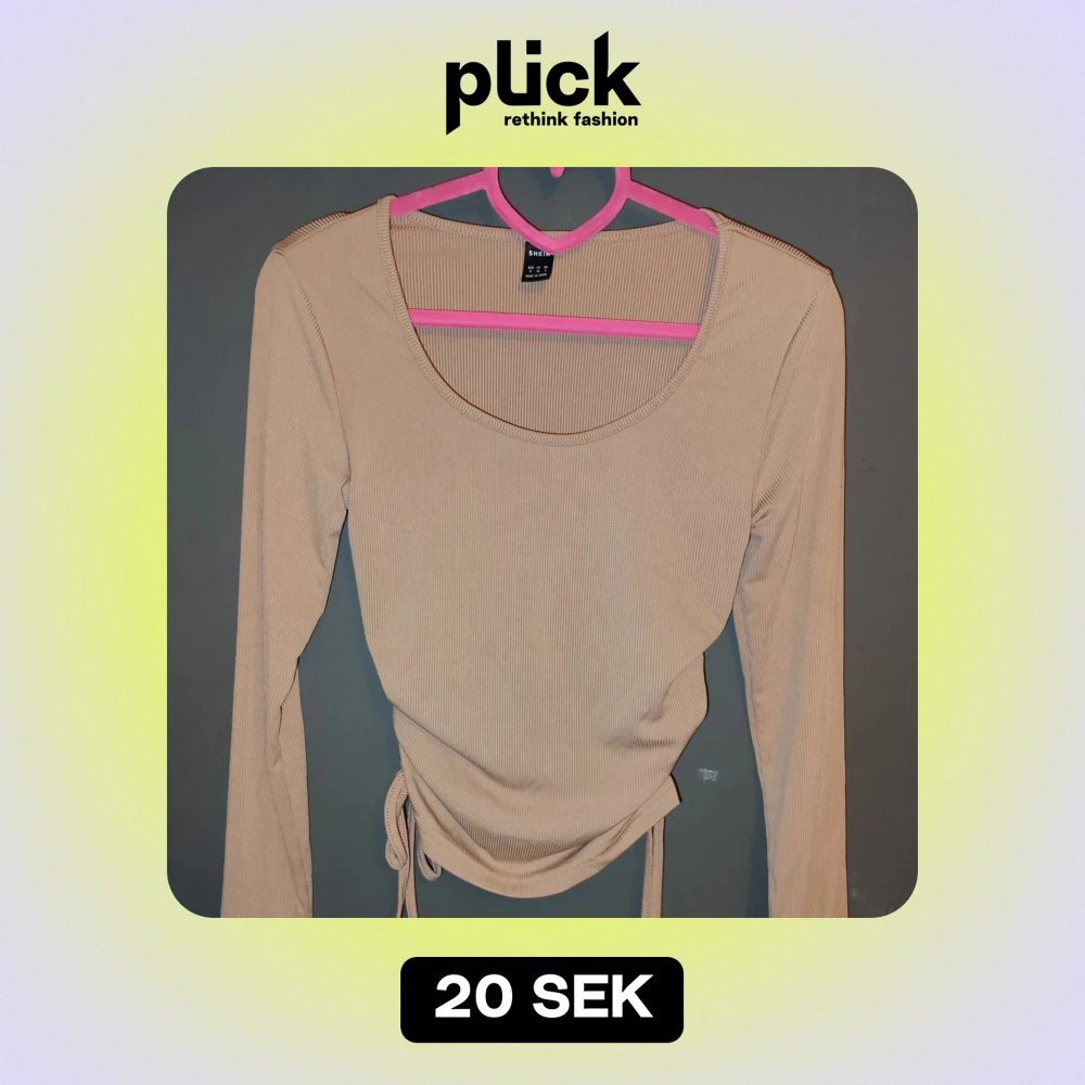 Säljer en snygg beige ribbad topp från SHEIN i storlek S. Den har långa ärmar och en cool knytdetalj i midjan som ger en fin passform. Perfekt för både vardag och fest! 🥳