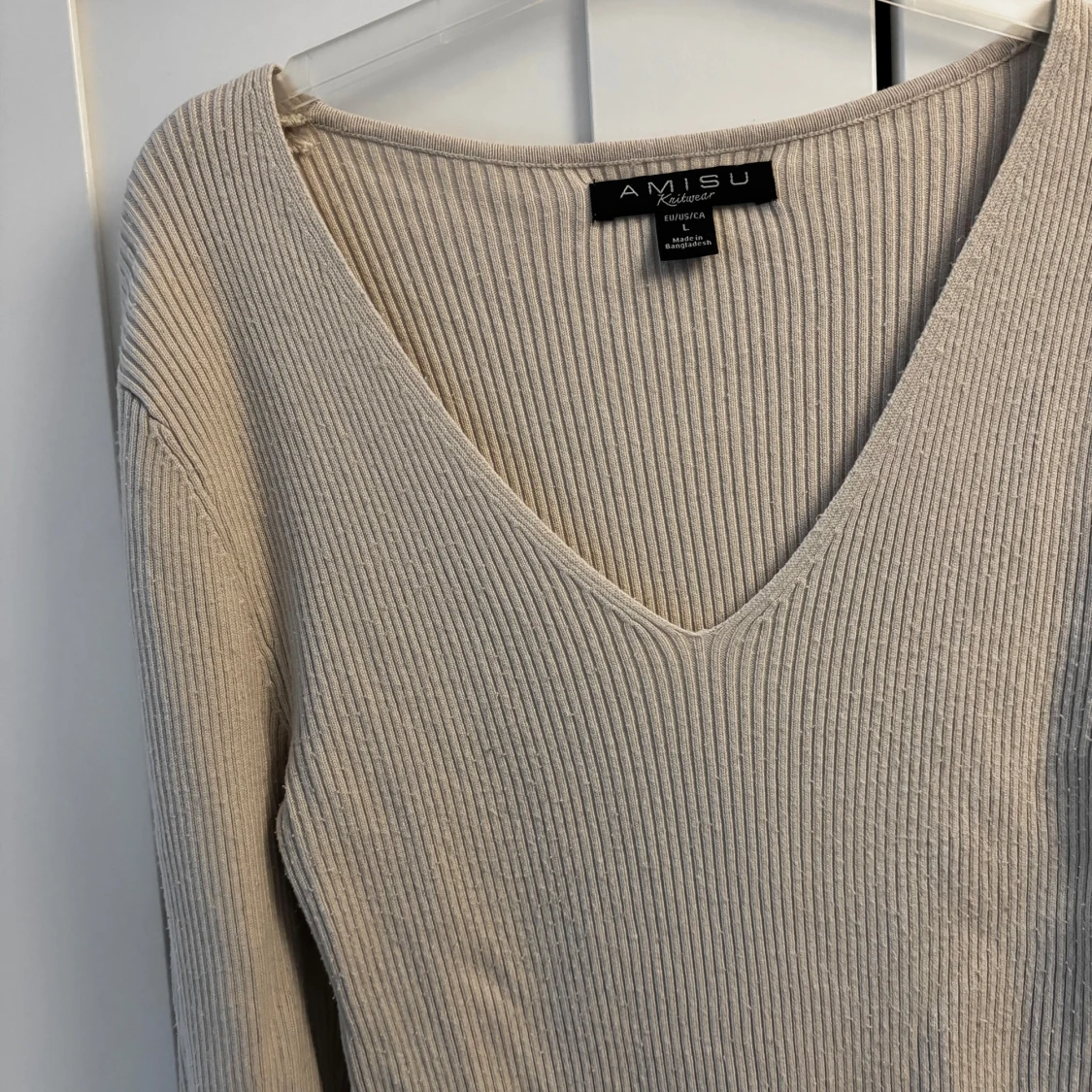 Beige ribbad tröja