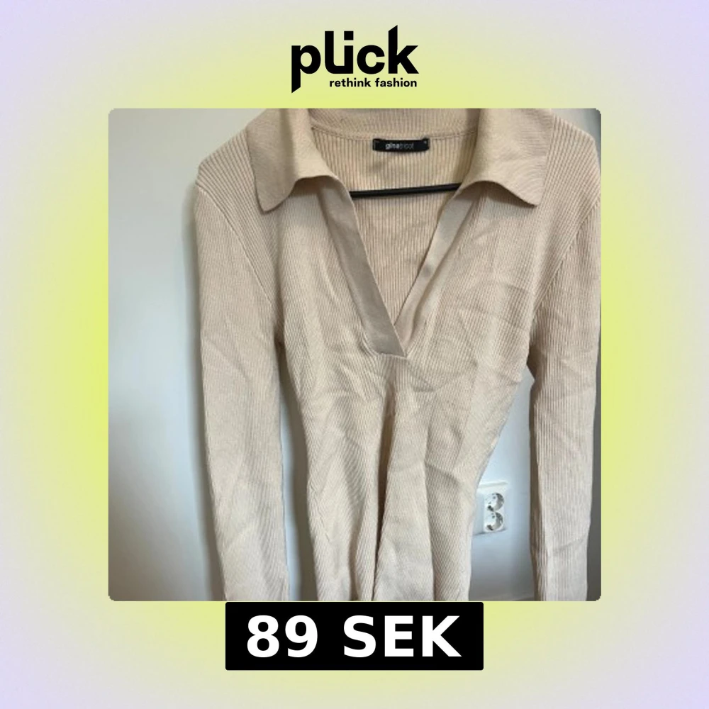 Säljer en stilren beige ribbad tröja från Gina Tricot. Tröjan har en klassisk krage och långa ärmar, perfekt för en avslappnad men ändå elegant look. Passar bra till både jeans och kjol. Perfekt för höst och vår! Finns en liten fläck på (se bild) som jag inte har provat att få bort 🤍