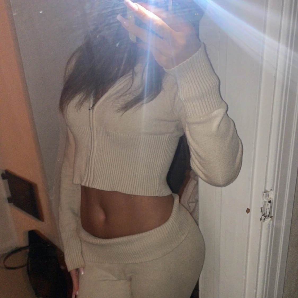Beiged stickat sett från gina tricot, 170 i byxorna 164 i tröjan
