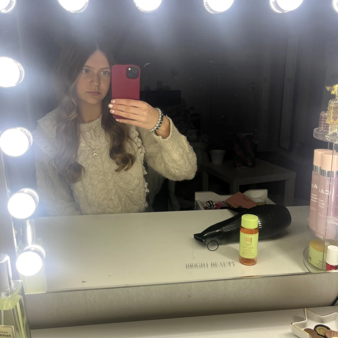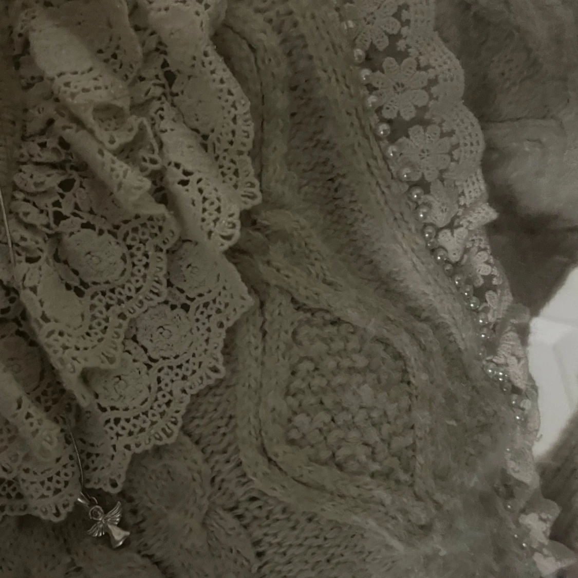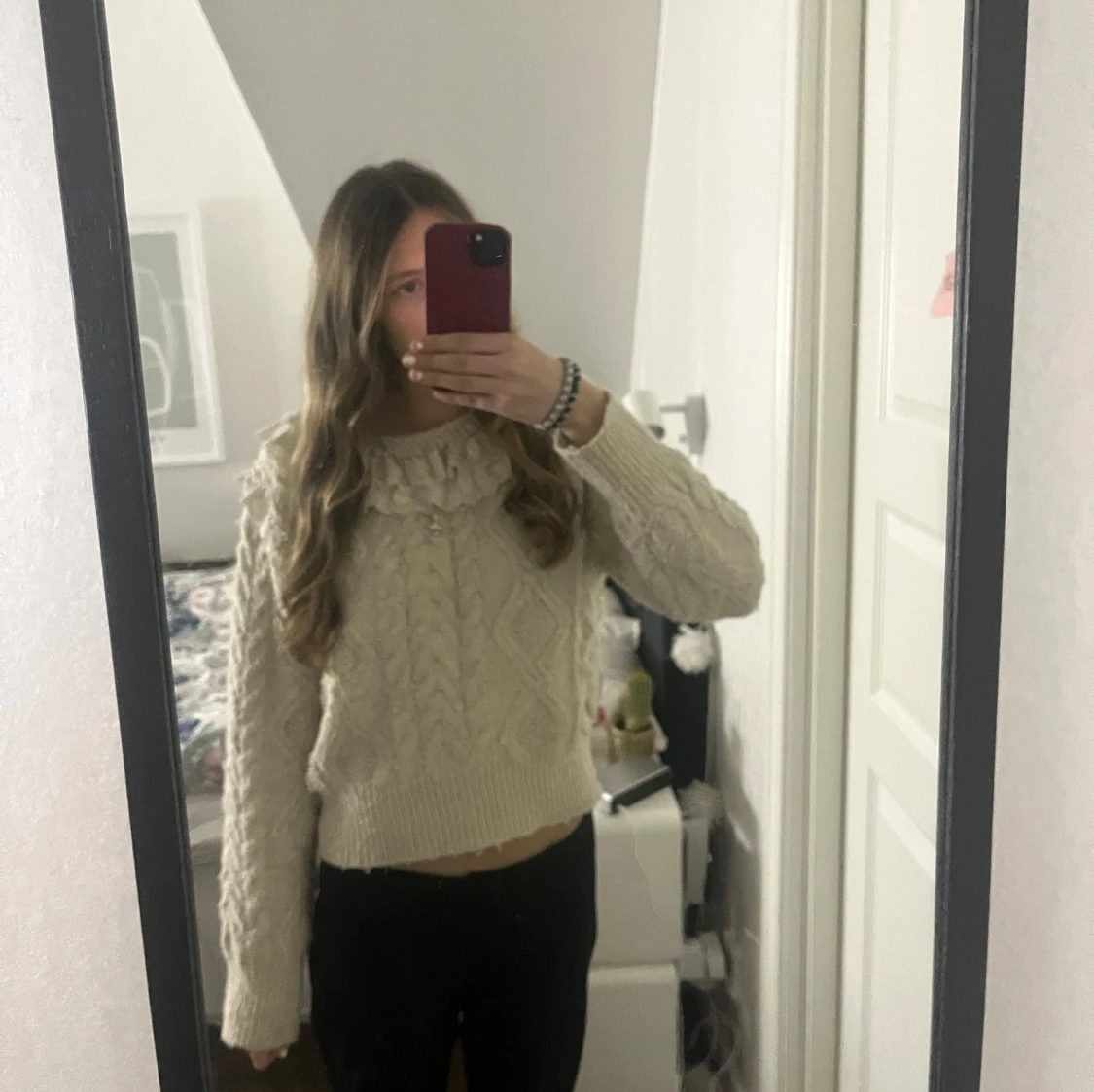 Säljer en beige tröja från Zara med vackra spetsdetaljer och stickat mönster. Den har en elegant design med fina detaljer som ger en unik look. Det står storlek s men skulle säga att den passar både xs och s💗