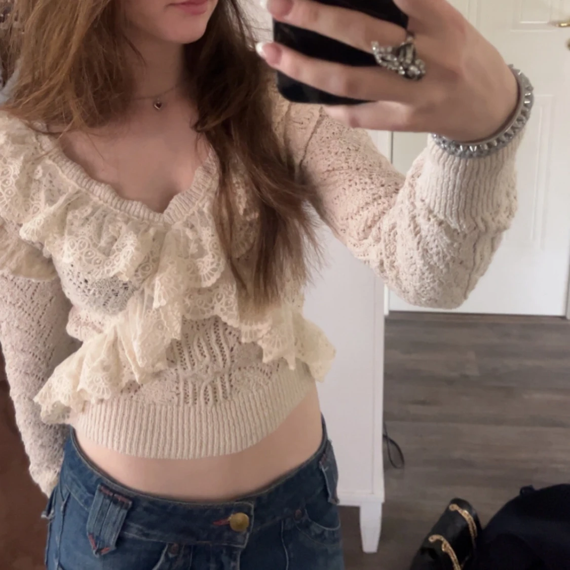 Säljer min tröja med spets från Zara på grund av för lite användning på senaste. Tröjan har inga defekter eller fläckar.