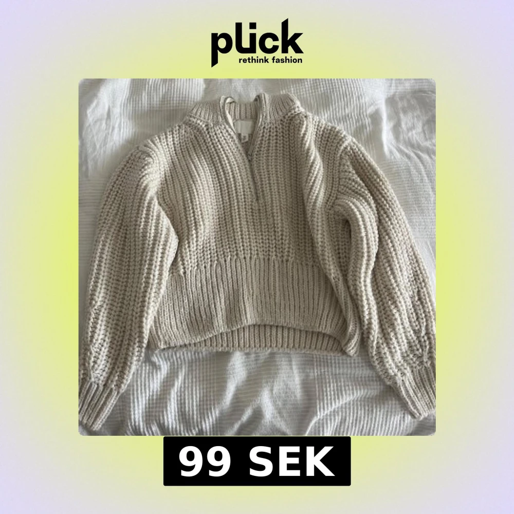 Supermysig beige stickad tröja från H&M med half zip-dragkedja i halsen 💌