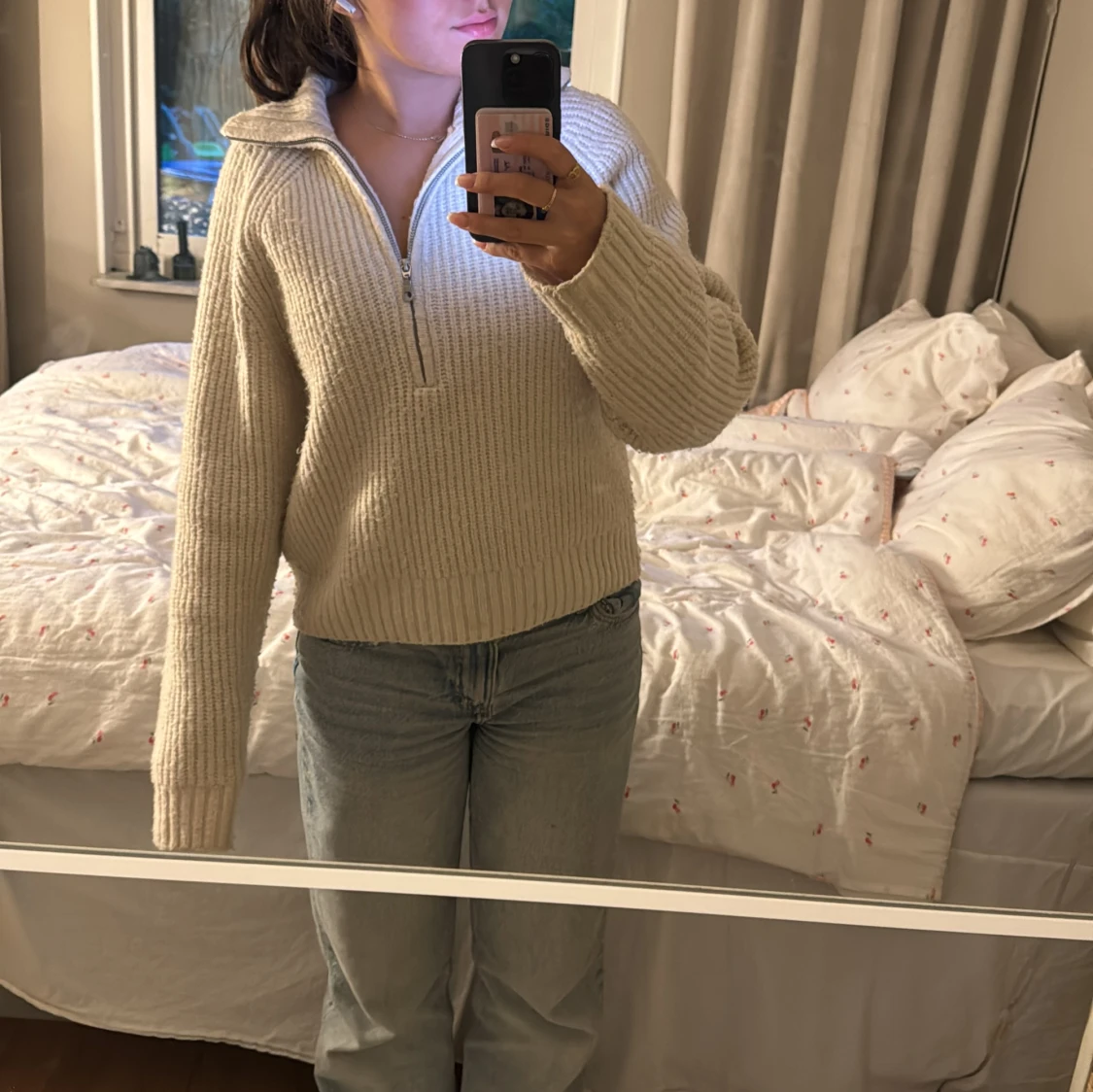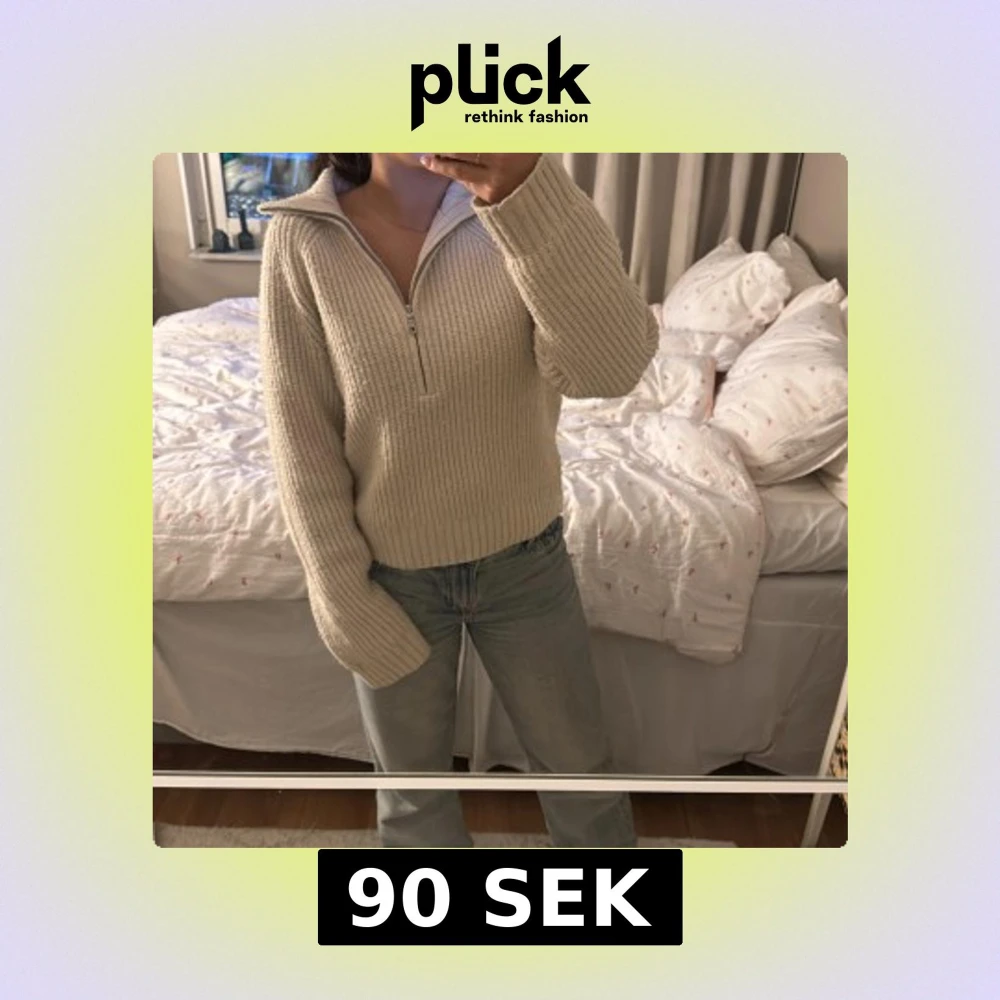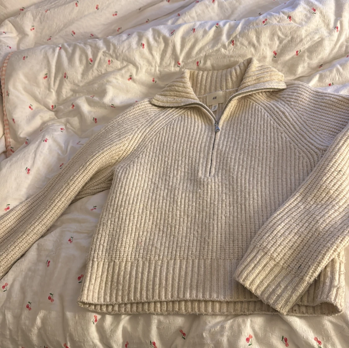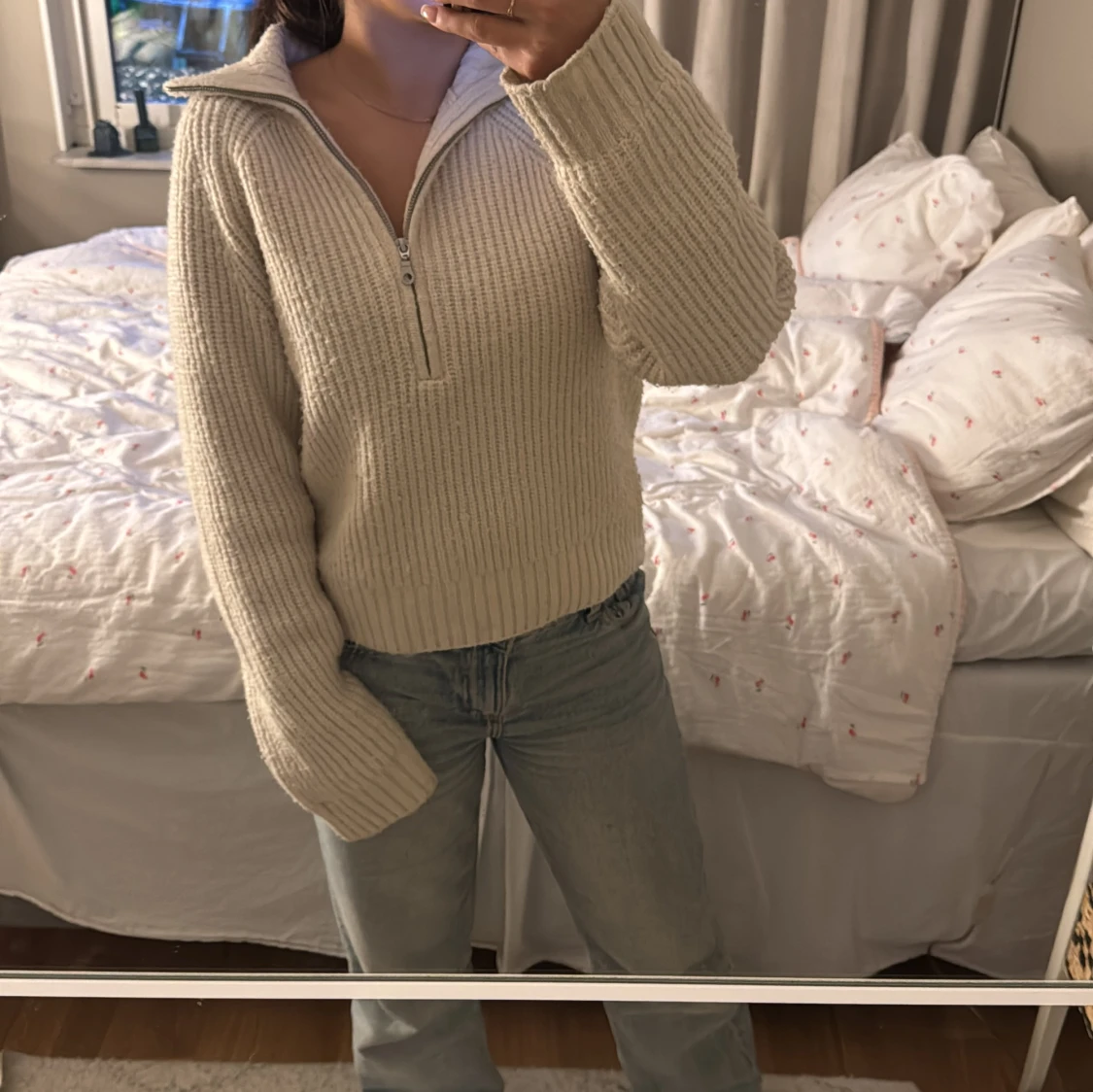 Supermysig beige stickad tröja från H&M med half zip och hög krage.