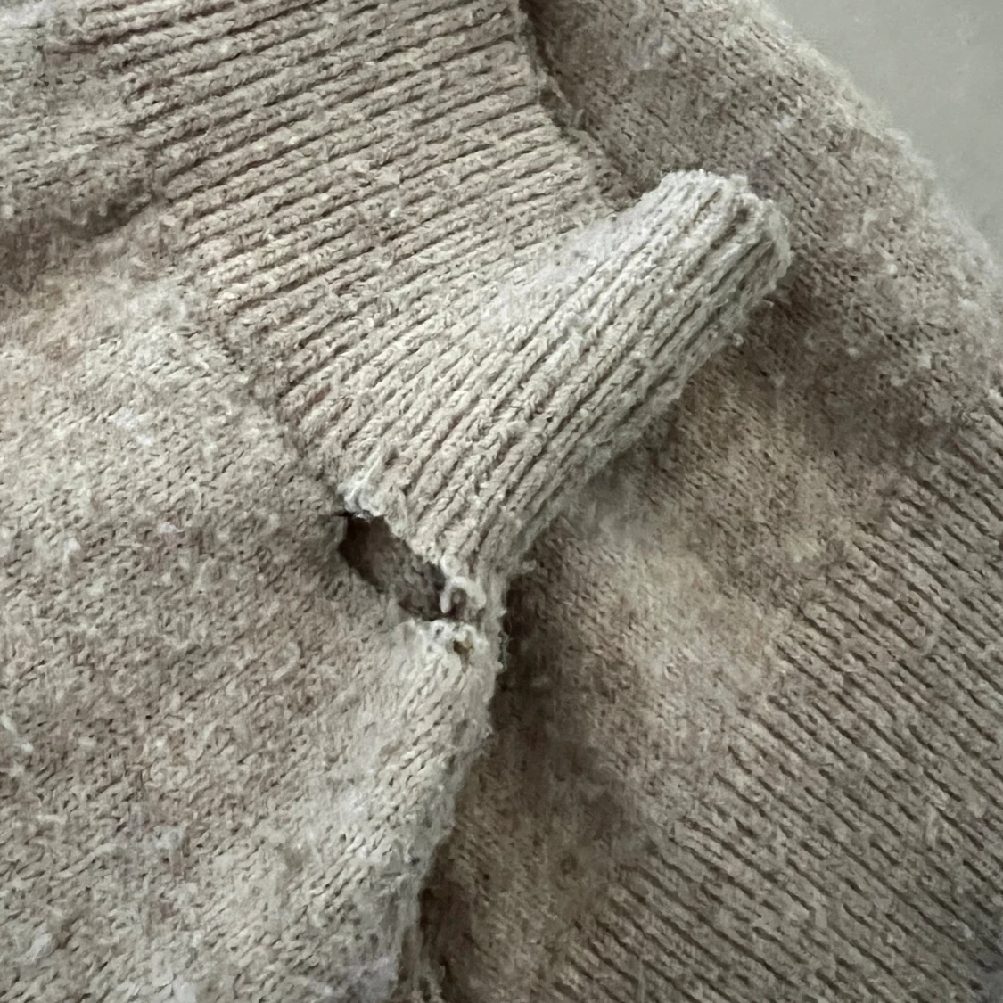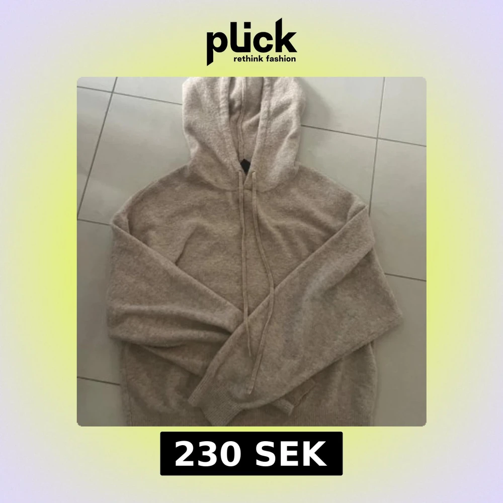 Mysig beige stickad hoodie med huva och snörning. Tröjan har långa ärmar och ribbade muddar vid ärmslut och nederkant. Perfekt för kyliga dagar och enkel att matcha med jeans eller mjukisbyxor.