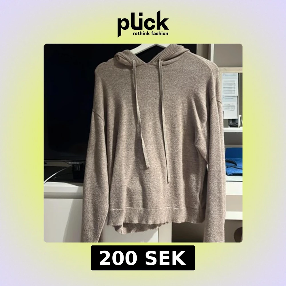 Mysig beige stickad hoodie med långa ärmar och snörning i huvan. Tröjan har en avslappnad passform och ribbade muddar vid ärmslut och nederkant. Perfekt för lager-på-lager och chill dagar.
