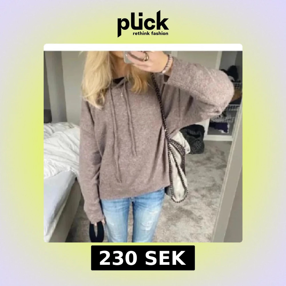 Mysig beige stickad hoodie från lindex med dragsko i huvan.