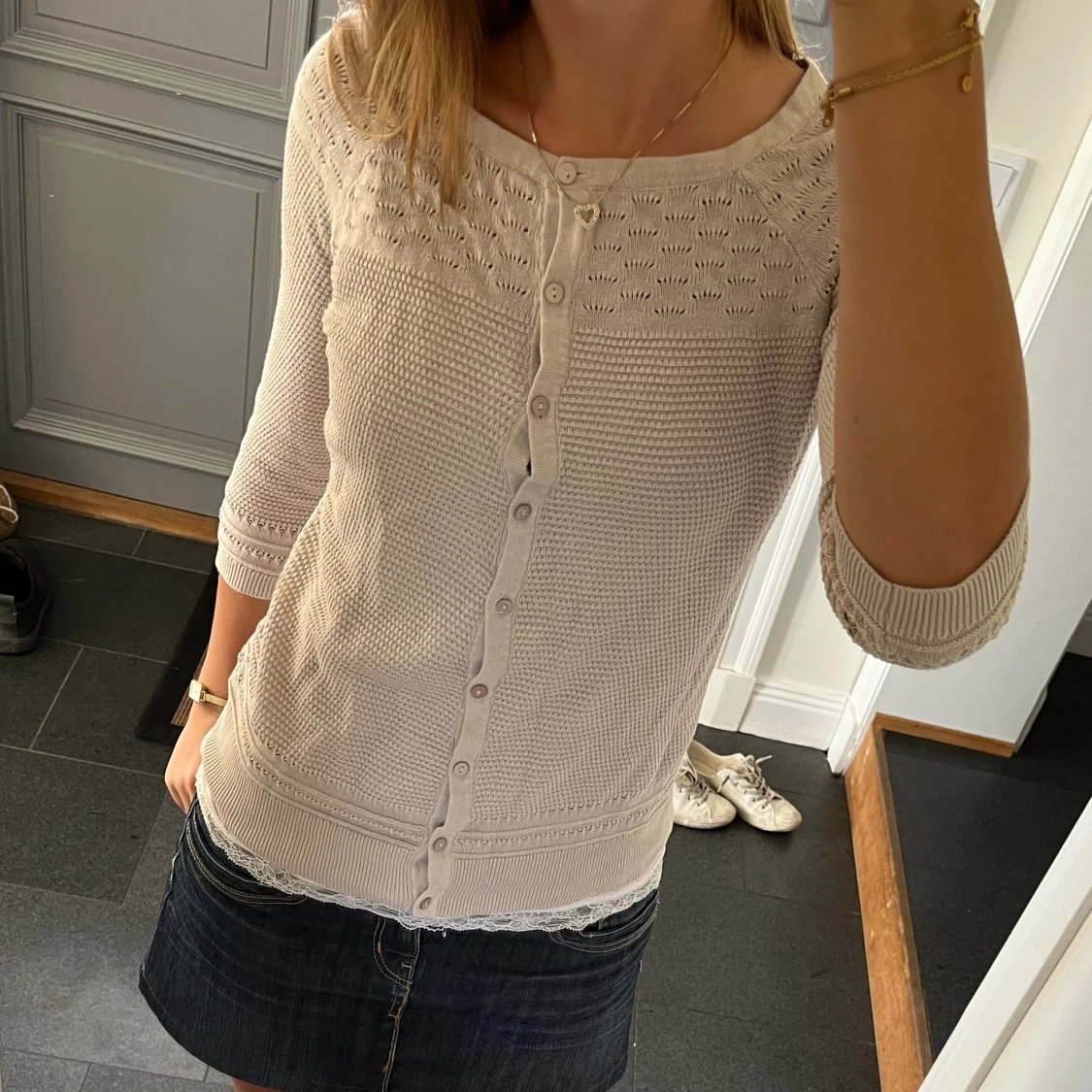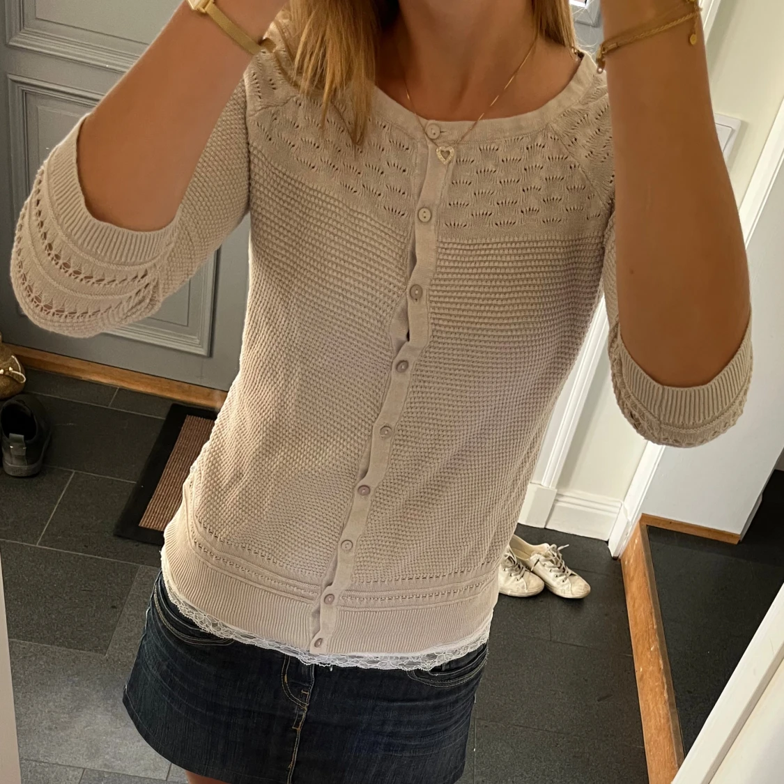 Beige stickad kofta