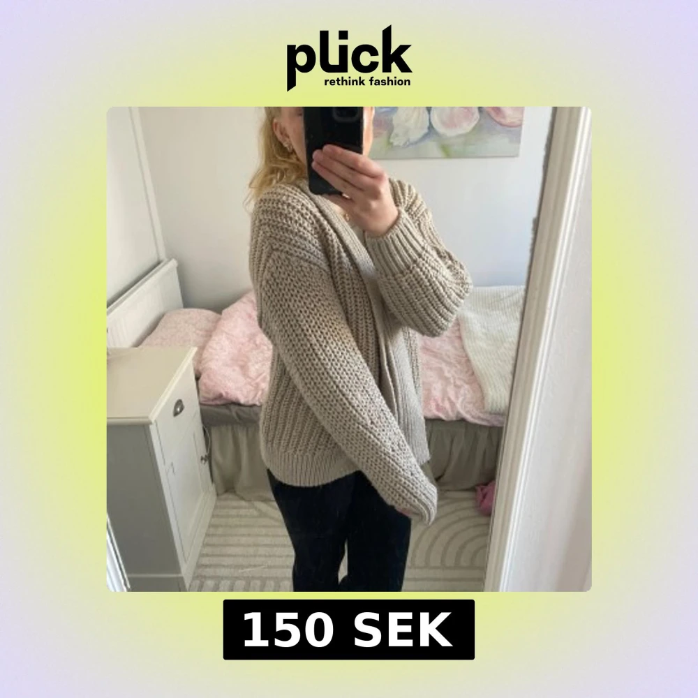 Mysig beige stickad kofta från H&M. Perfekt för kyliga dagar med sin grova stickning och långa ärmar. Enkel att matcha med olika outfits.