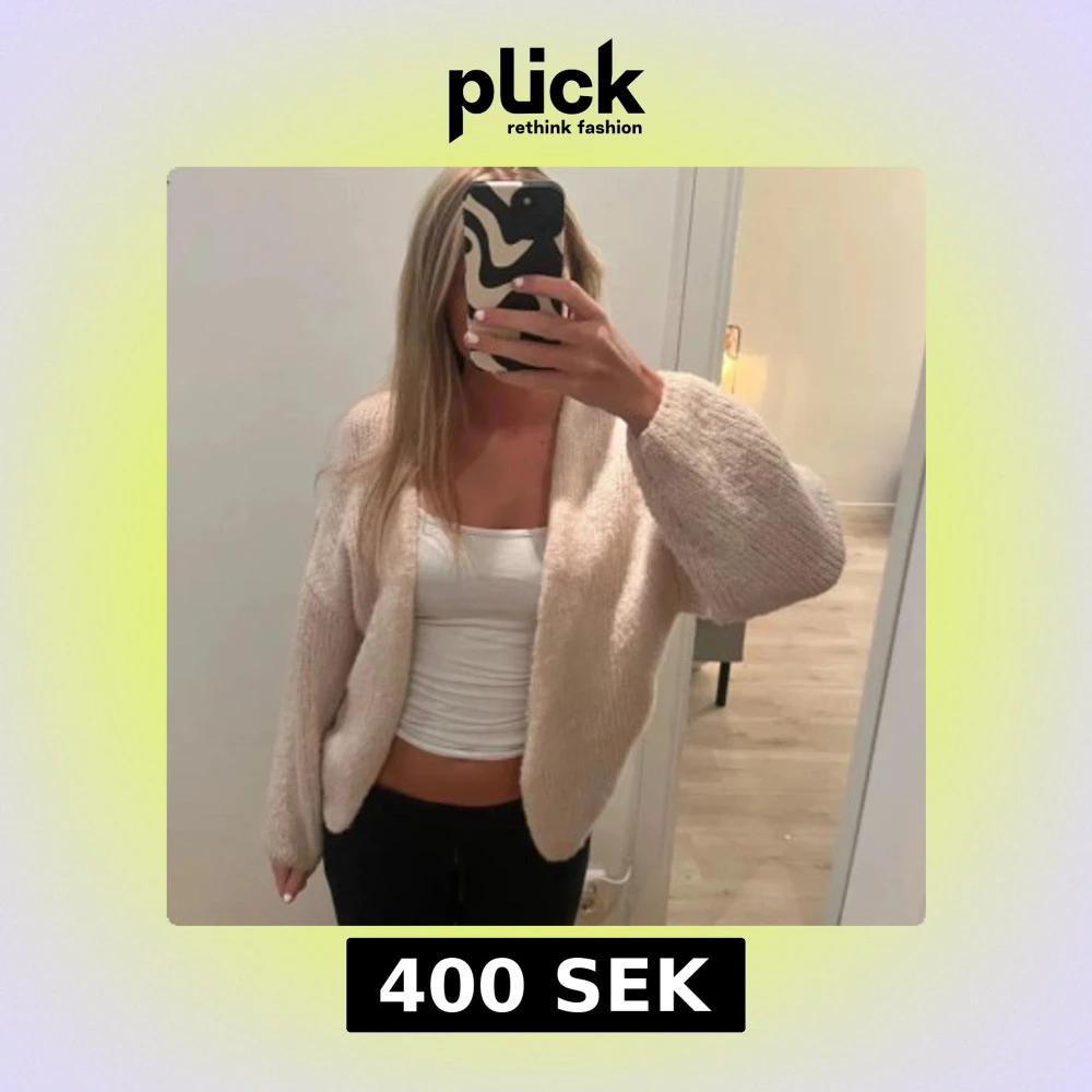 Mysig beige stickad kofta från Lindex med en öppen design. Perfekt för att hålla sig varm under kyliga dagar. Koftan har långa ärmar och en avslappnad passform.