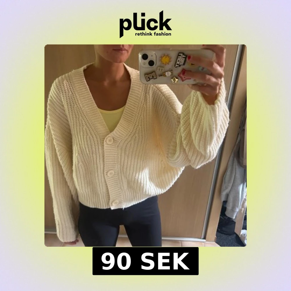 Supermysig beige stickad kofta från Weekday i oversized modell. Koftan har bred ribbstickning, stora knappar framtill och långa ärmar