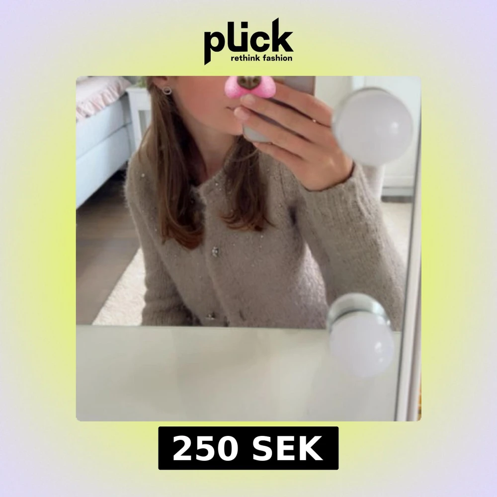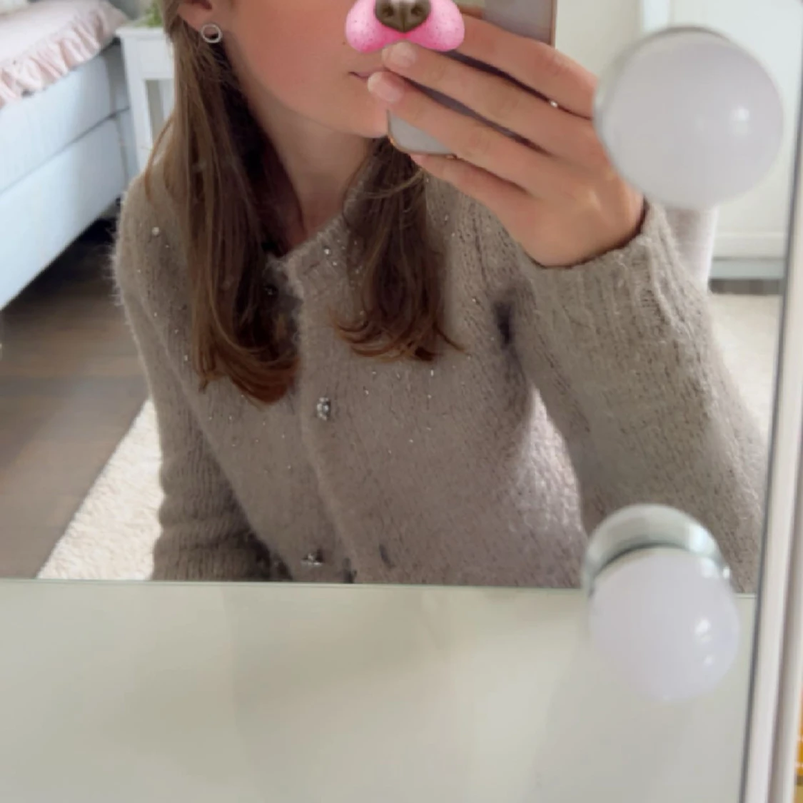 Superfin beige stickad kofta med pärlknappar, har även pärlor upptill. Koftan har lång ärm och en klassisk rund halsringning. (Fixar bättre bild snart!) Sällan använd så i mycket fint skick. 🥰