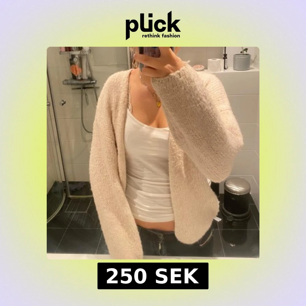 Mysig beige stickad kofta med långärmad design från Lindex.