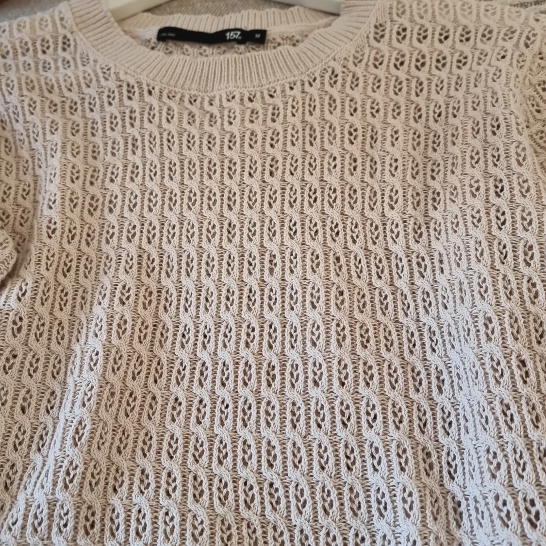 Oanvänd beige virkad tröja från lager 157, sitter perfekt med ett par vanliga jeans eller någon kjol.📸💯 Är jätteskön och mjuk.